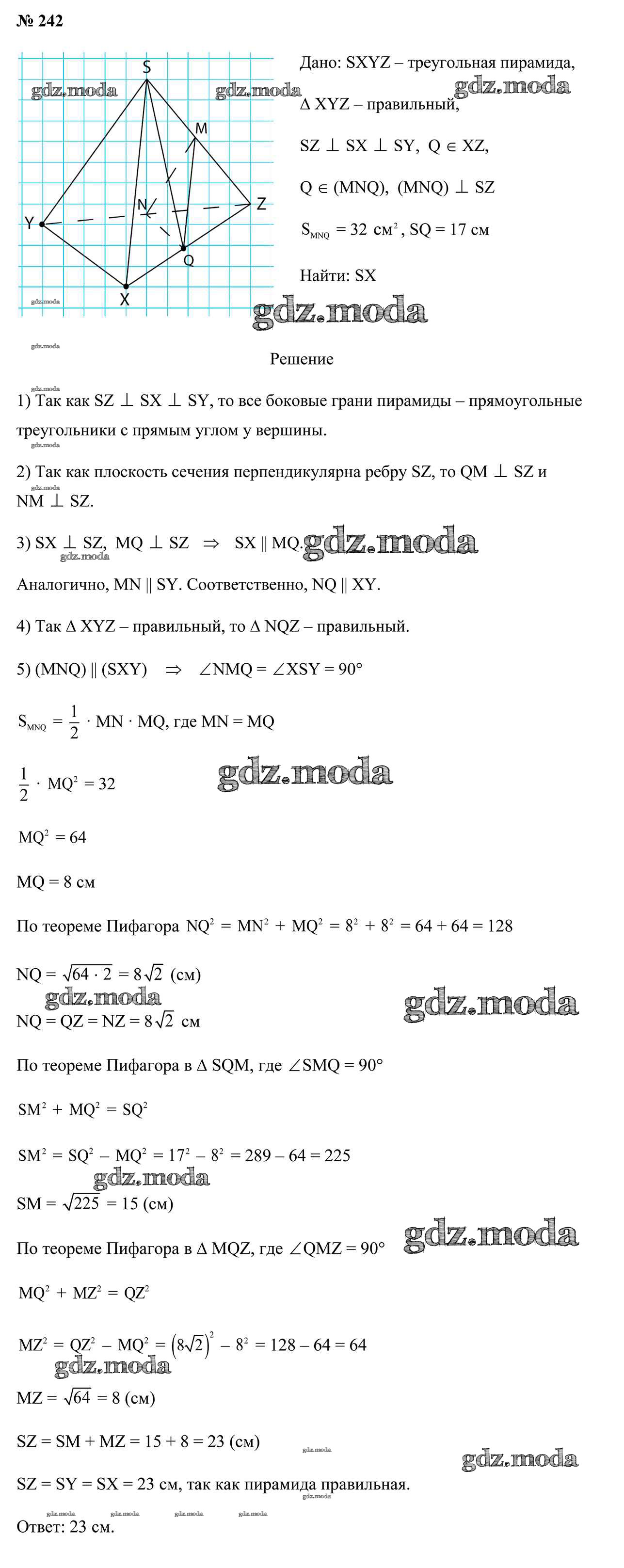 ОТВЕТ на задание № 242 Учебник по Геометрии 10 класс Латотин