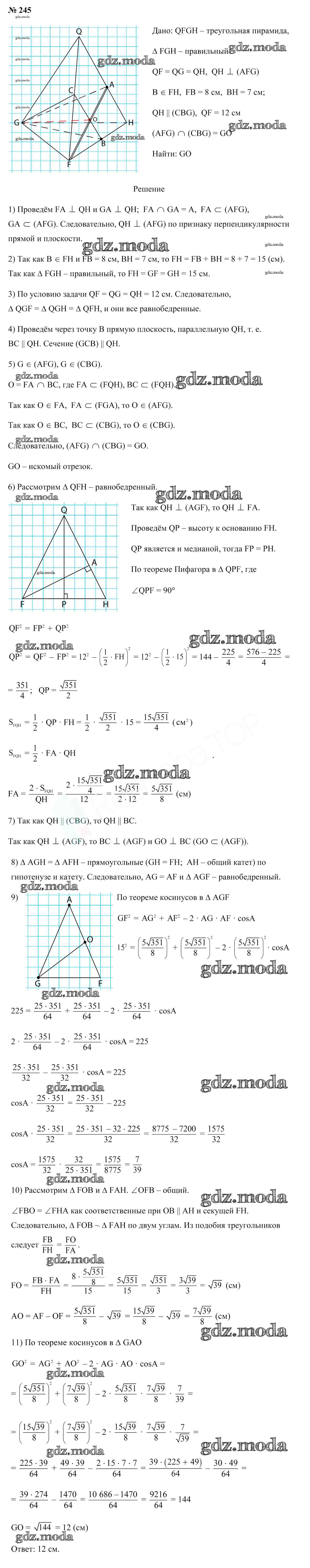 ОТВЕТ на задание № 245 Учебник по Геометрии 10 класс Латотин