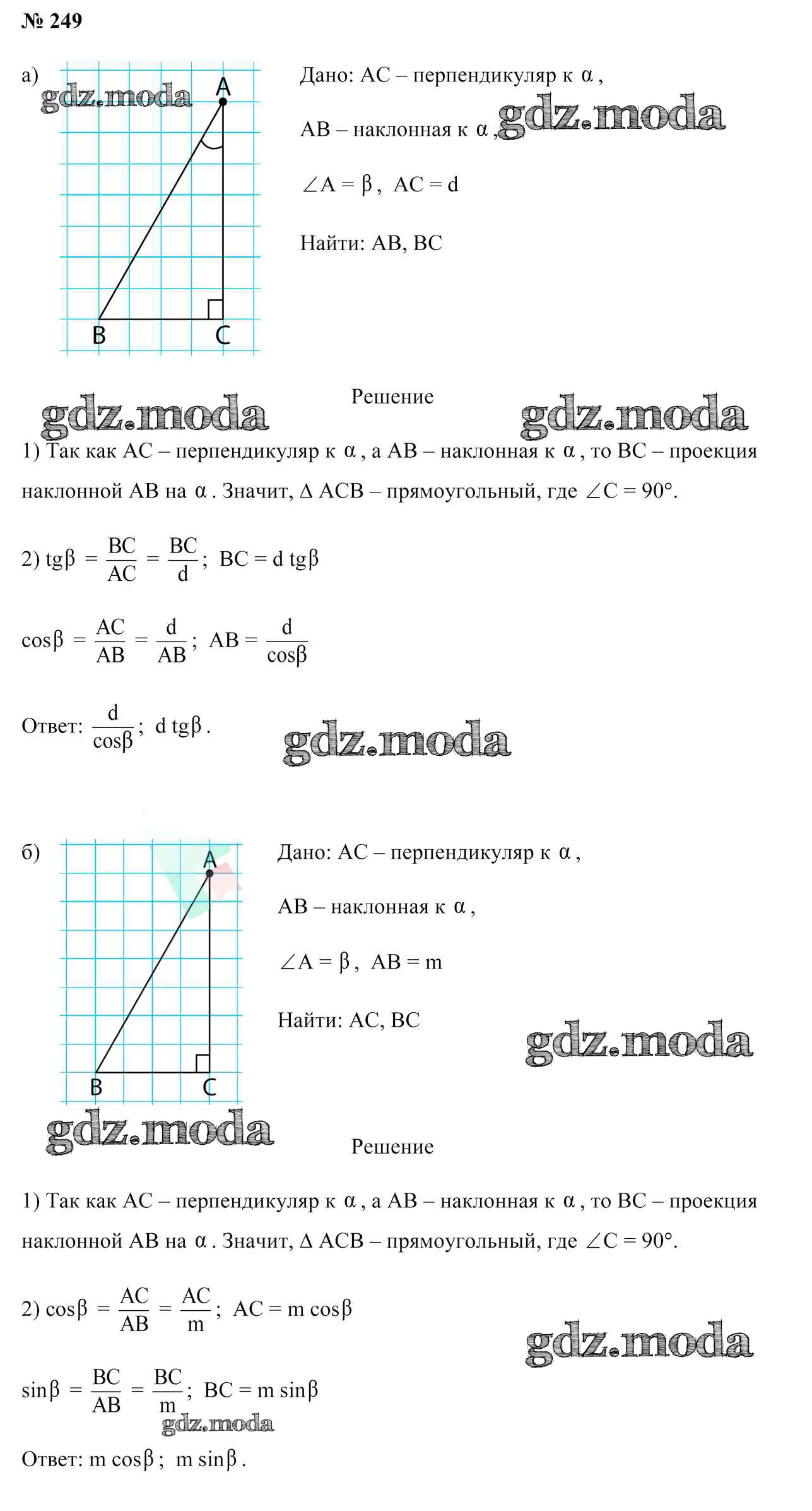 ОТВЕТ на задание № 249 Учебник по Геометрии 10 класс Латотин