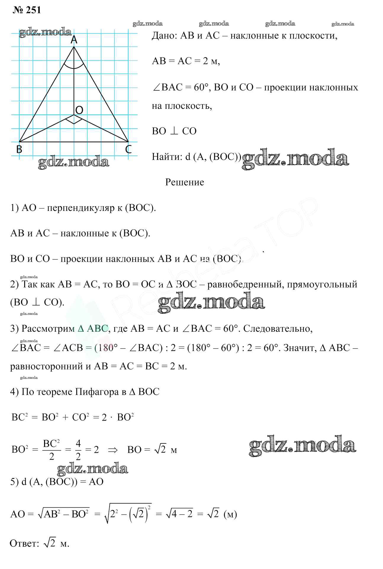 ОТВЕТ на задание № 251 Учебник по Геометрии 10 класс Латотин