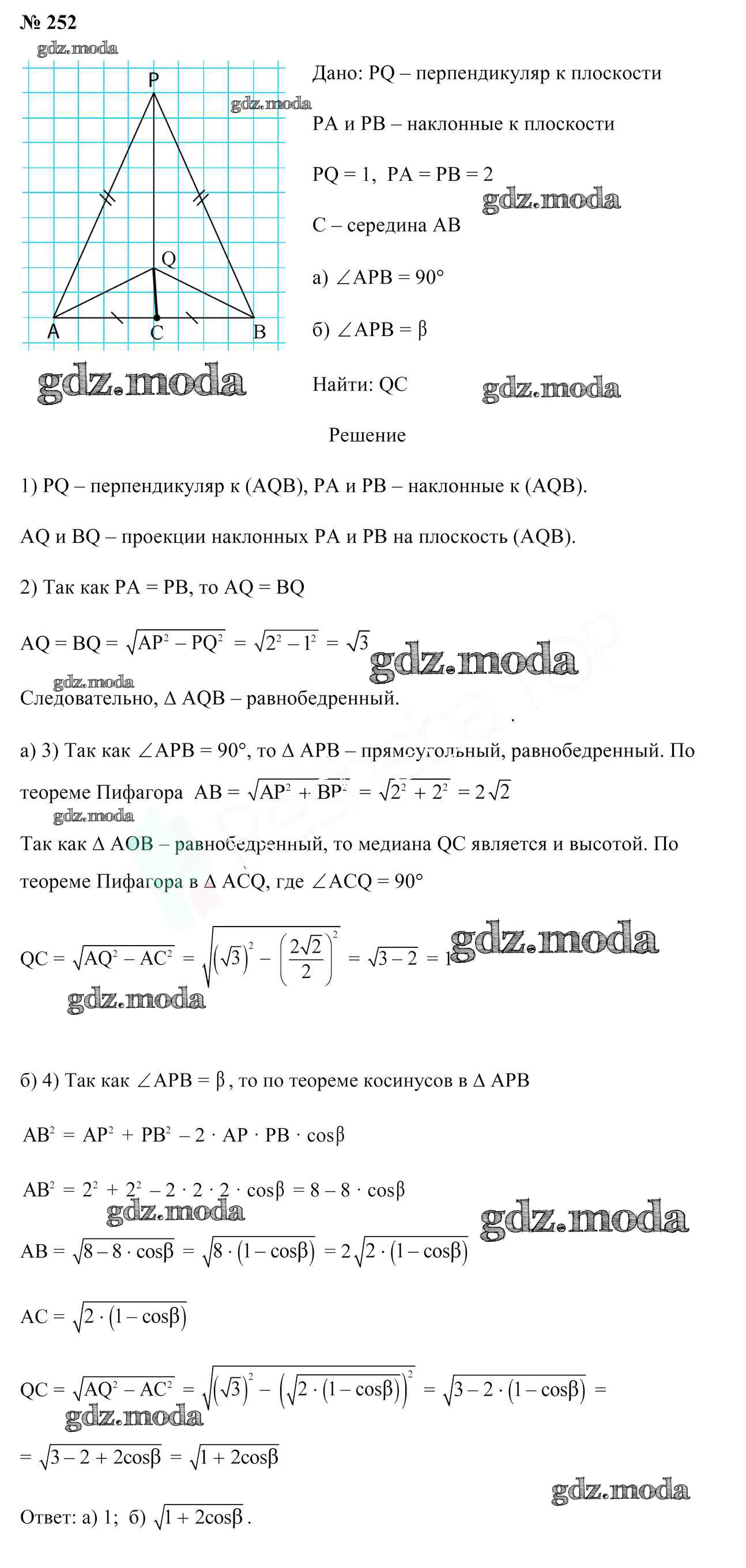 ОТВЕТ на задание № 252 Учебник по Геометрии 10 класс Латотин