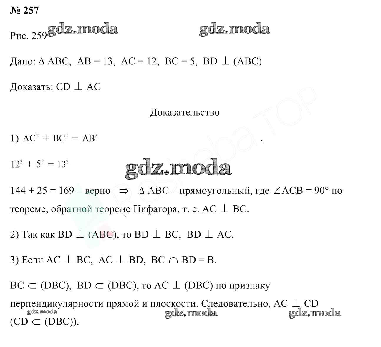 ОТВЕТ на задание № 257 Учебник по Геометрии 10 класс Латотин