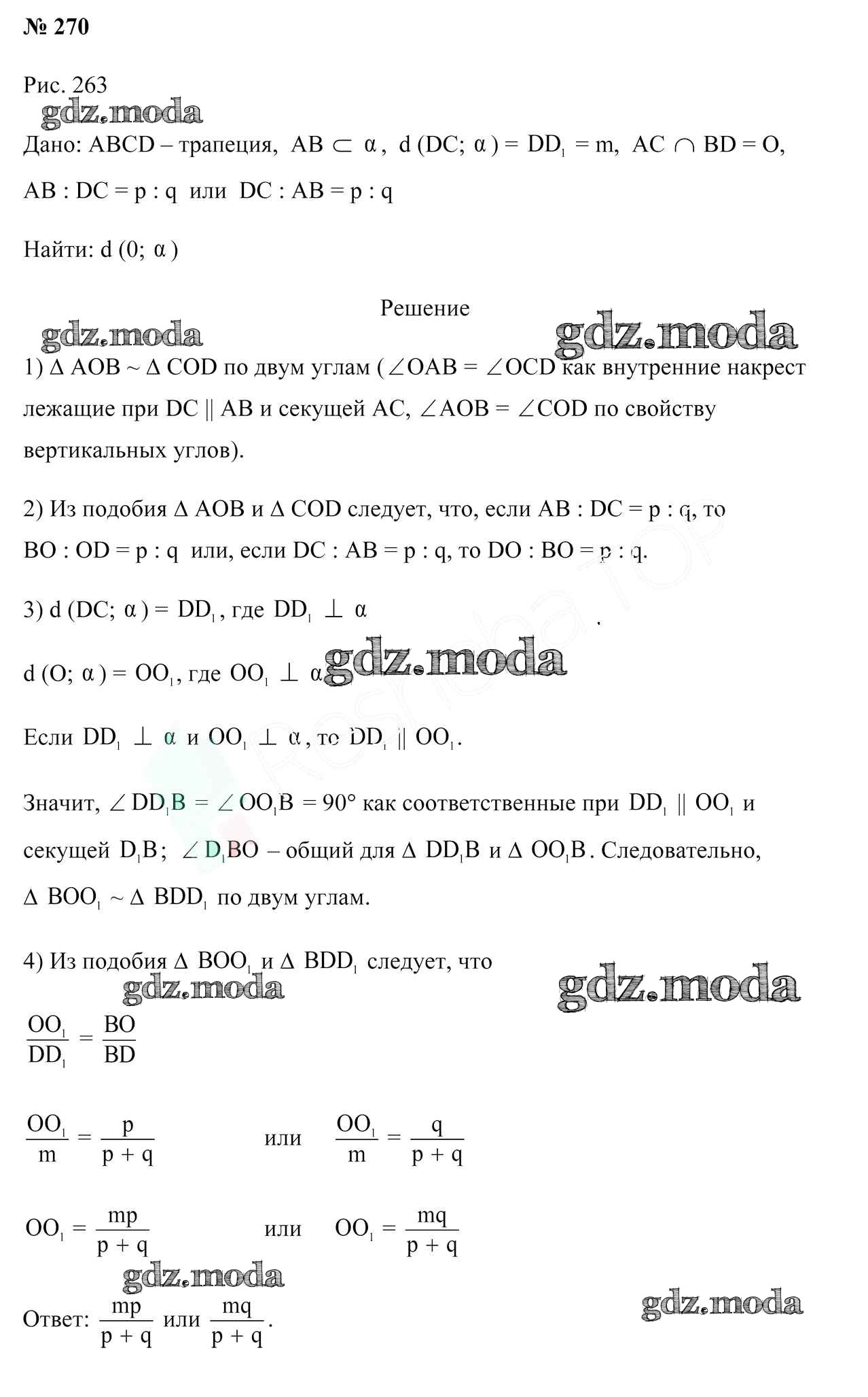 ОТВЕТ на задание № 270 Учебник по Геометрии 10 класс Латотин