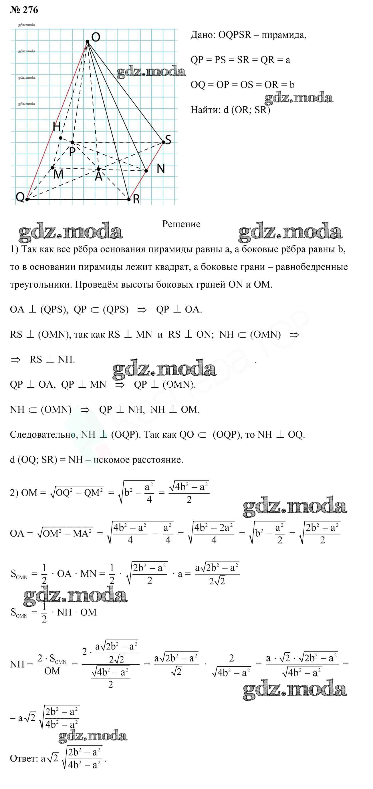 ОТВЕТ на задание № 276 Учебник по Геометрии 10 класс Латотин