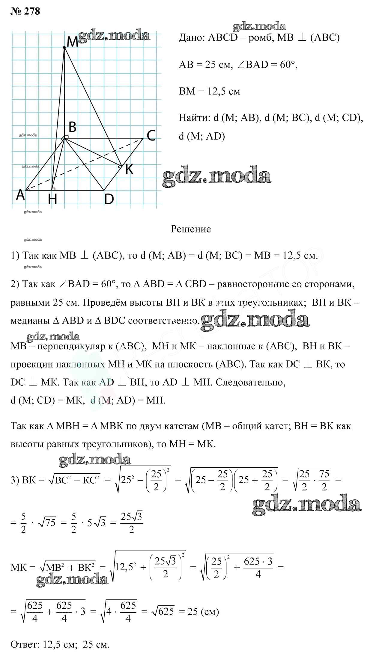 ОТВЕТ на задание № 278 Учебник по Геометрии 10 класс Латотин