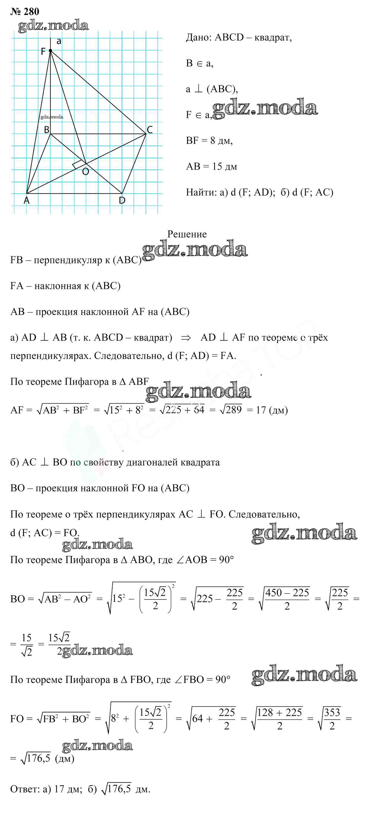 ОТВЕТ на задание № 280 Учебник по Геометрии 10 класс Латотин