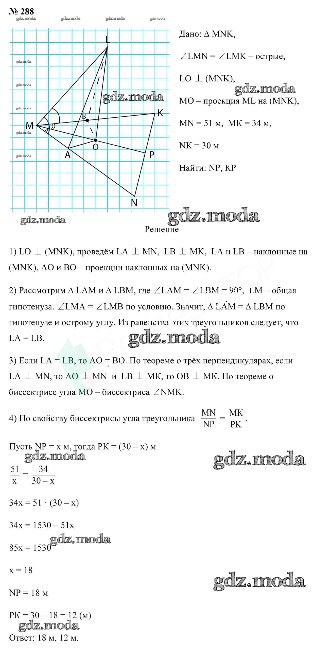 ОТВЕТ на задание № 288 Учебник по Геометрии 10 класс Латотин