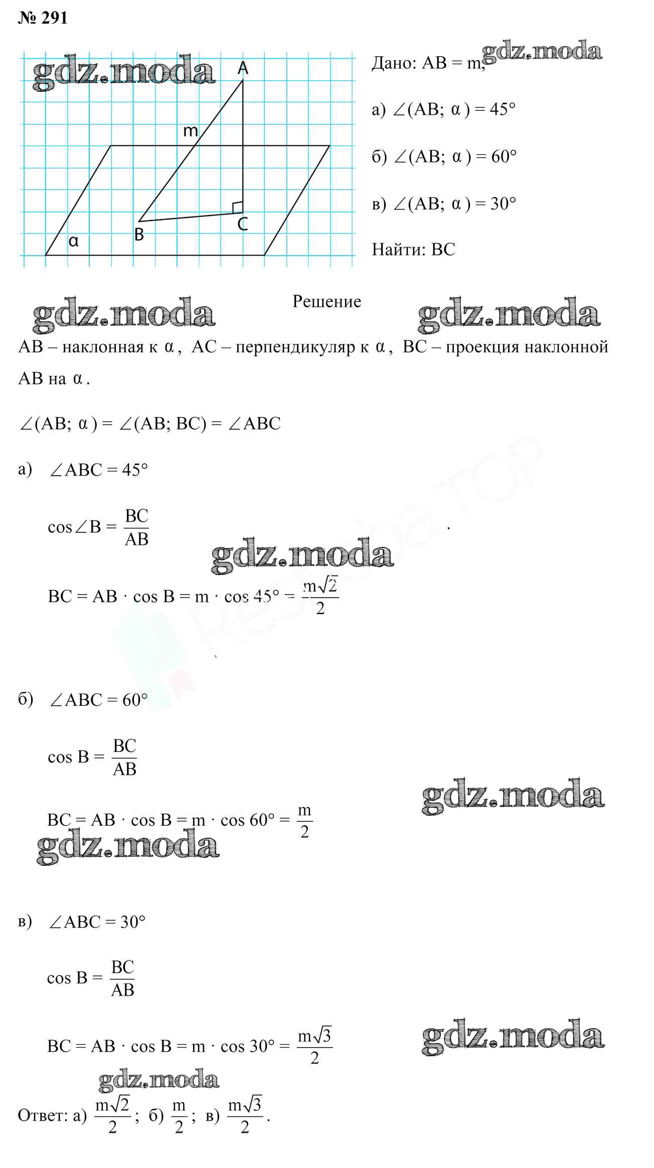 ОТВЕТ на задание № 291 Учебник по Геометрии 10 класс Латотин