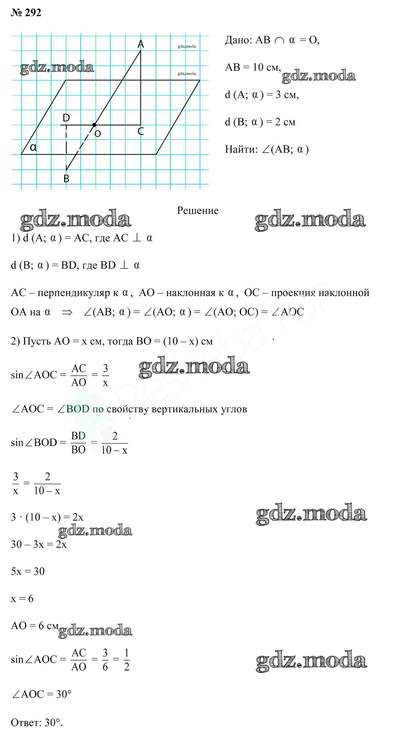 ОТВЕТ на задание № 292 Учебник по Геометрии 10 класс Латотин