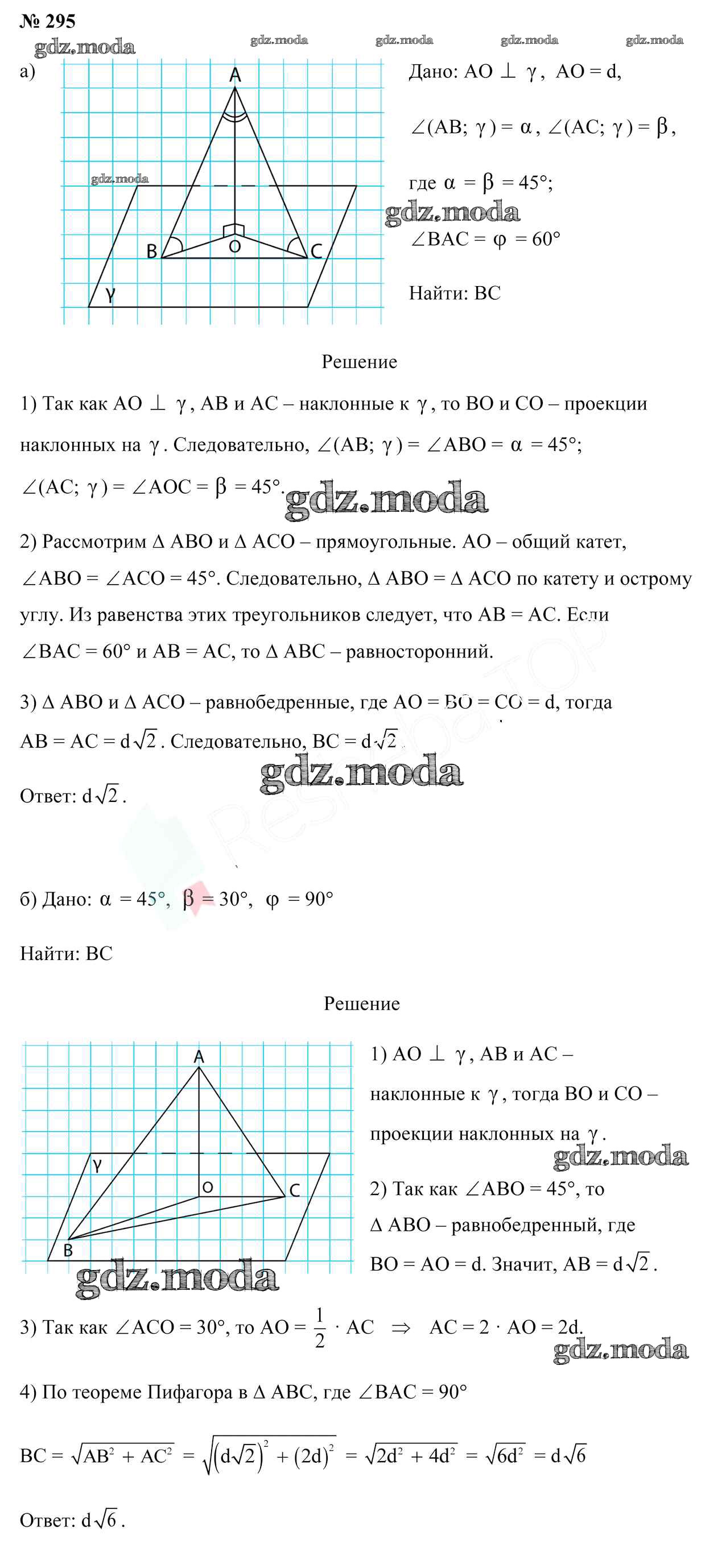 ОТВЕТ на задание № 295 Учебник по Геометрии 10 класс Латотин