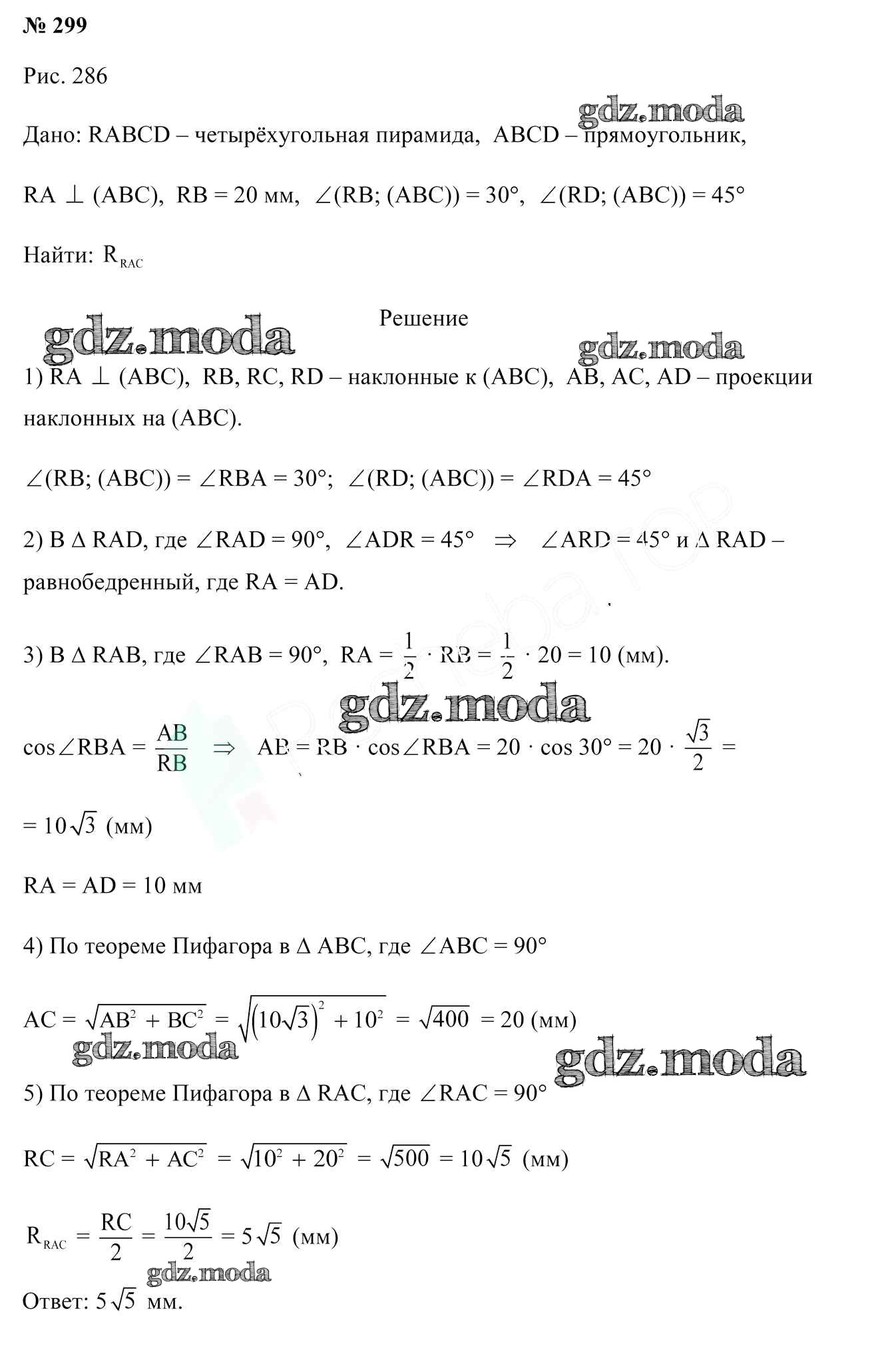 ОТВЕТ на задание № 299 Учебник по Геометрии 10 класс Латотин