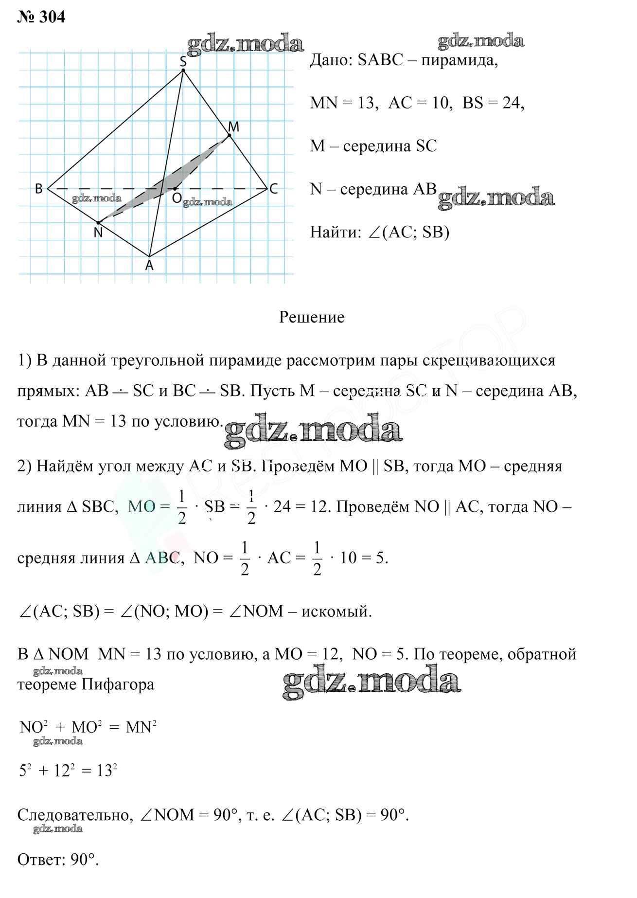 ОТВЕТ на задание № 304 Учебник по Геометрии 10 класс Латотин