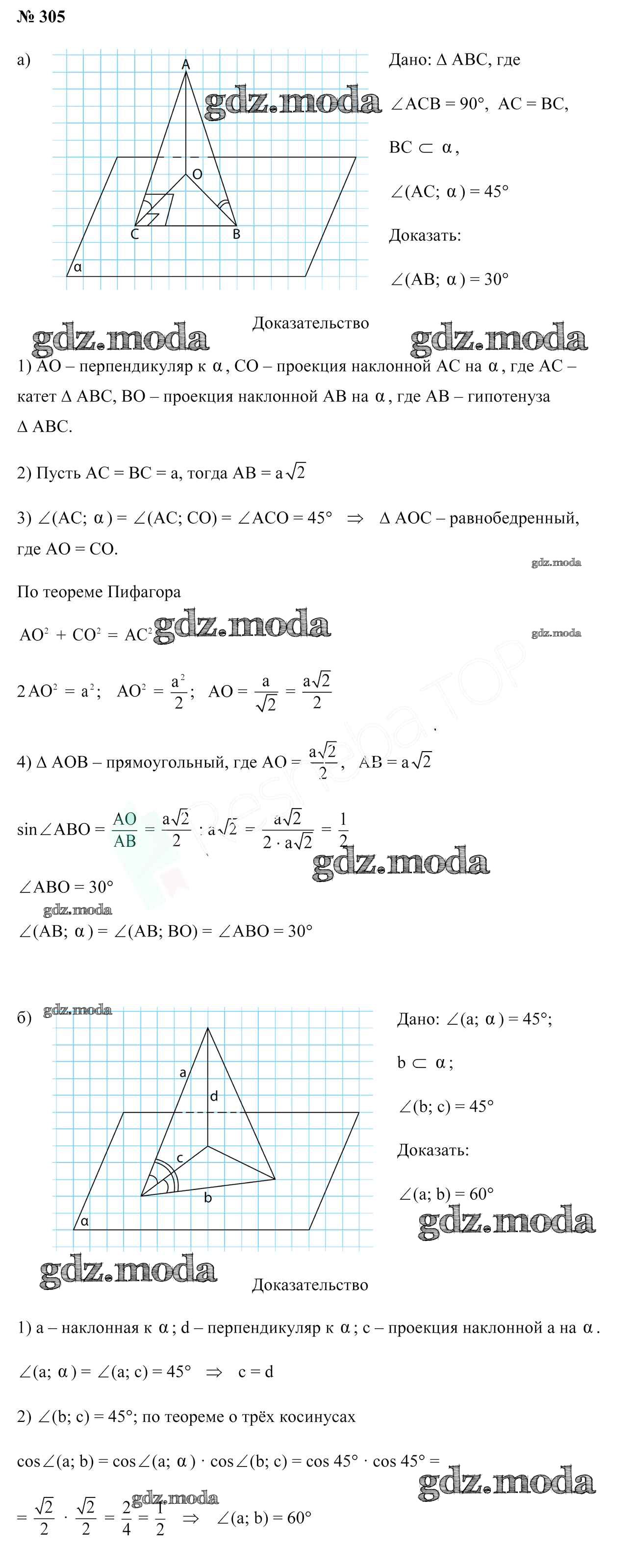 ОТВЕТ на задание № 305 Учебник по Геометрии 10 класс Латотин