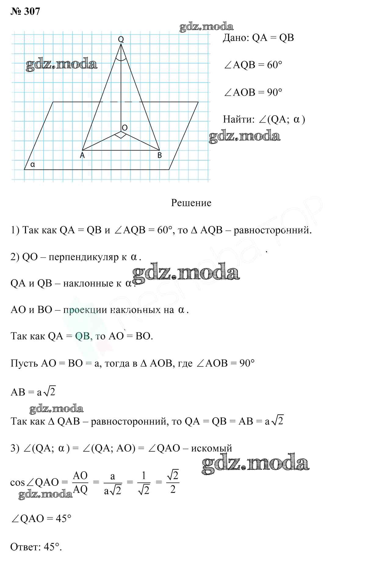 ОТВЕТ на задание № 307 Учебник по Геометрии 10 класс Латотин