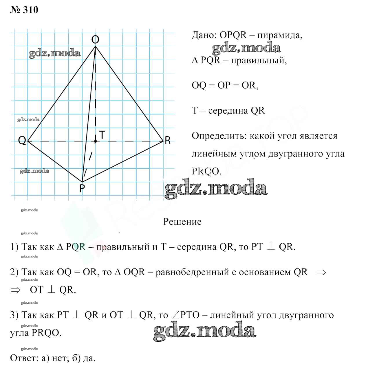 ОТВЕТ на задание № 310 Учебник по Геометрии 10 класс Латотин