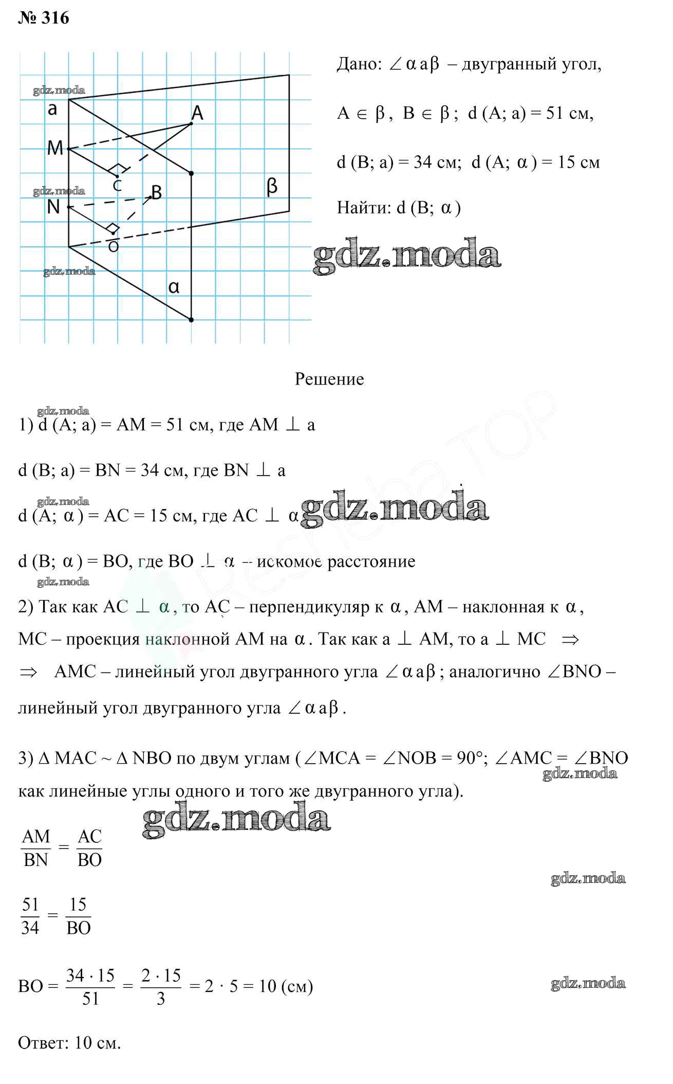 ОТВЕТ на задание № 316 Учебник по Геометрии 10 класс Латотин