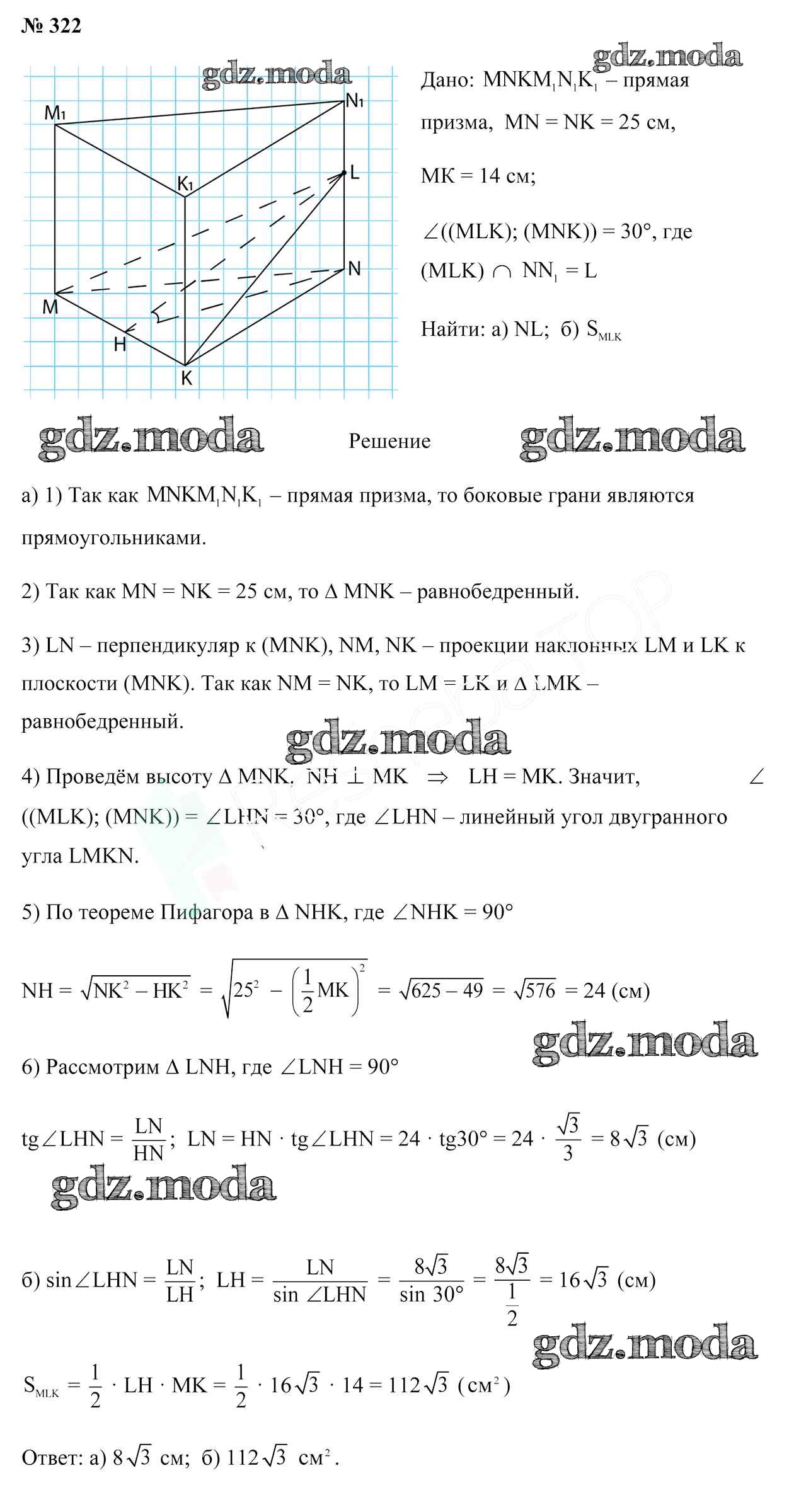 ОТВЕТ на задание № 322 Учебник по Геометрии 10 класс Латотин