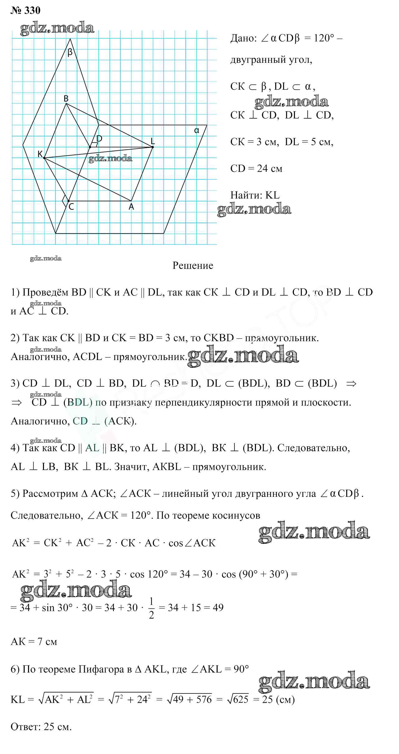 ОТВЕТ на задание № 330 Учебник по Геометрии 10 класс Латотин