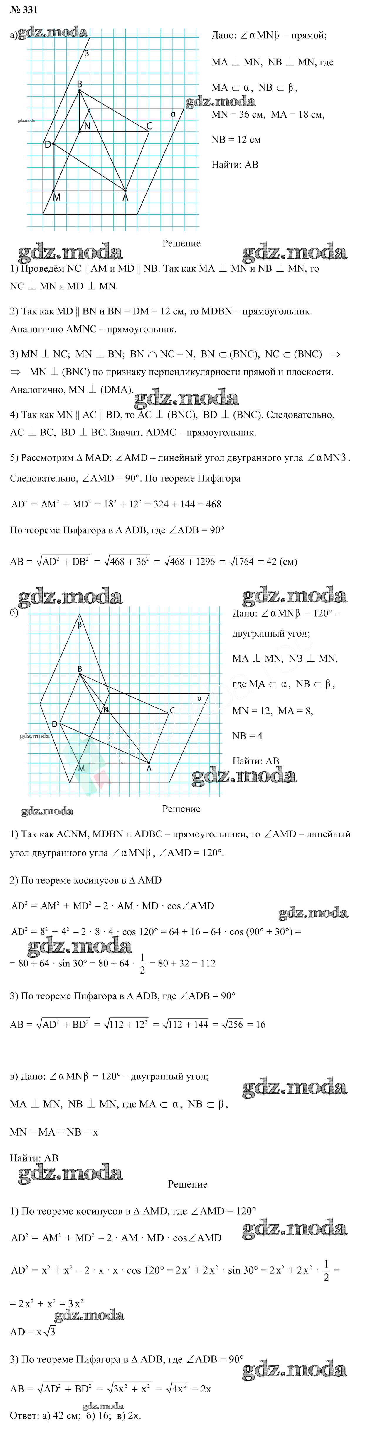 ОТВЕТ на задание № 331 Учебник по Геометрии 10 класс Латотин