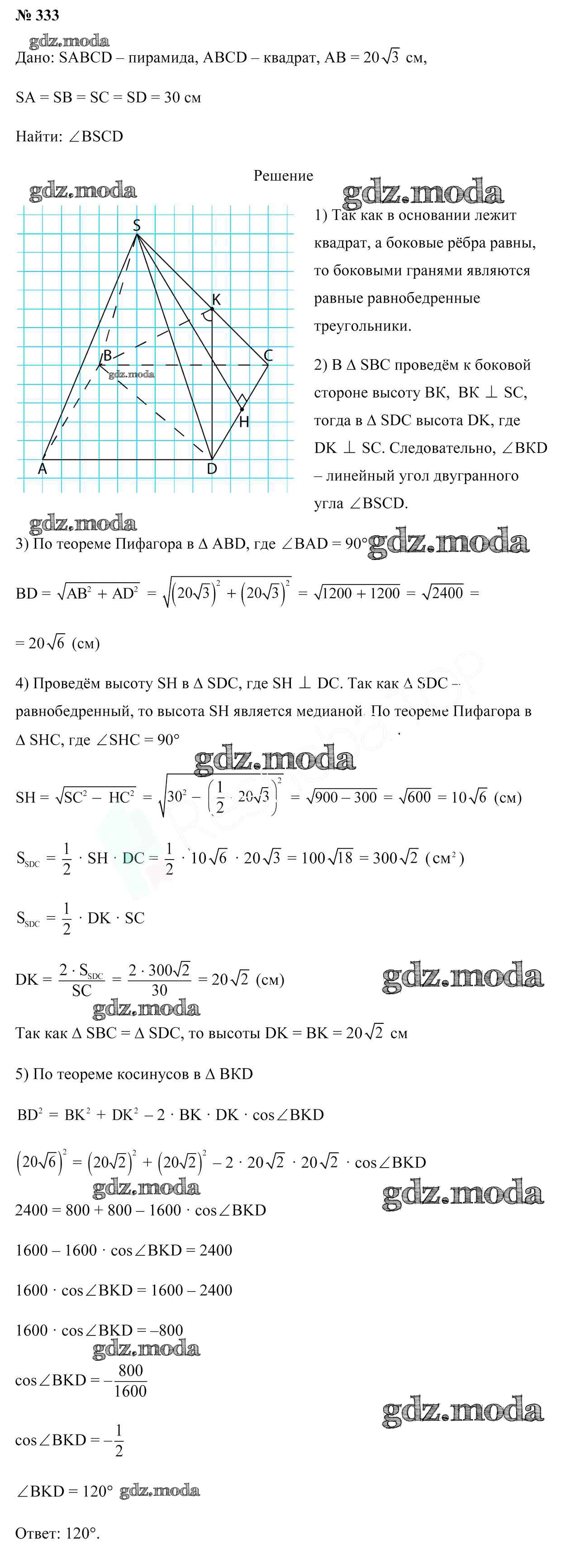 ОТВЕТ на задание № 333 Учебник по Геометрии 10 класс Латотин
