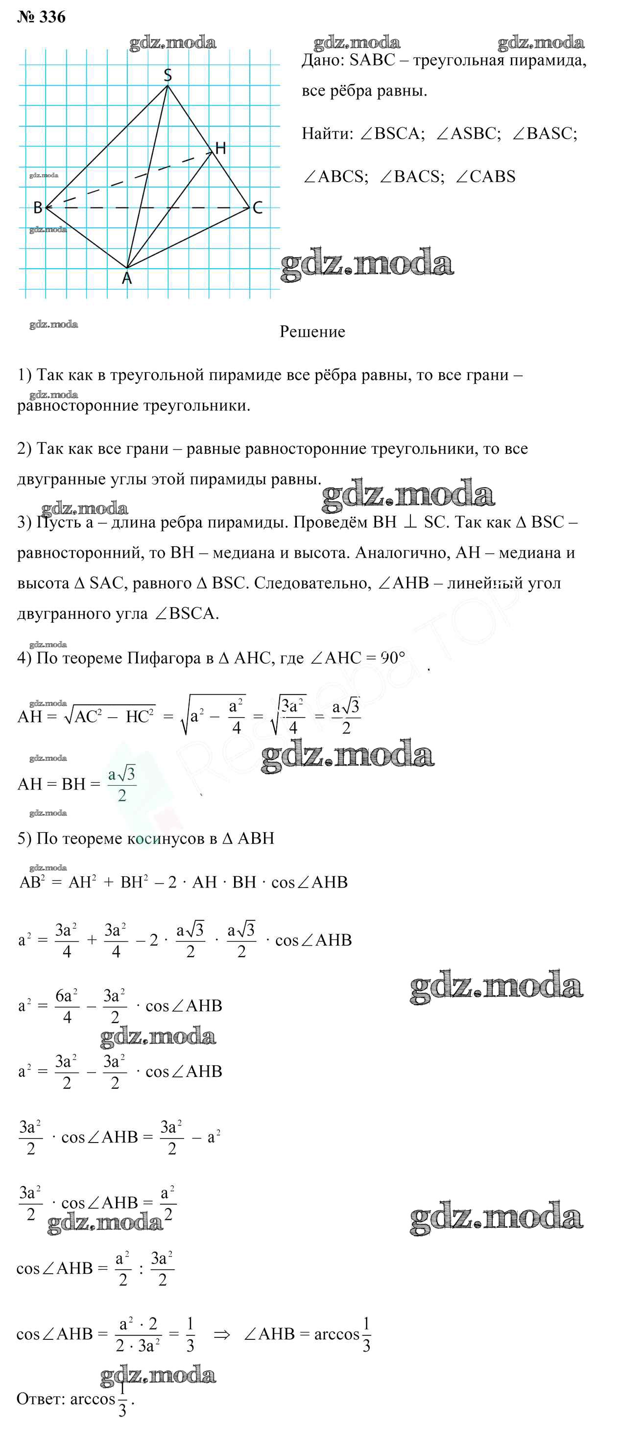 ОТВЕТ на задание № 336 Учебник по Геометрии 10 класс Латотин