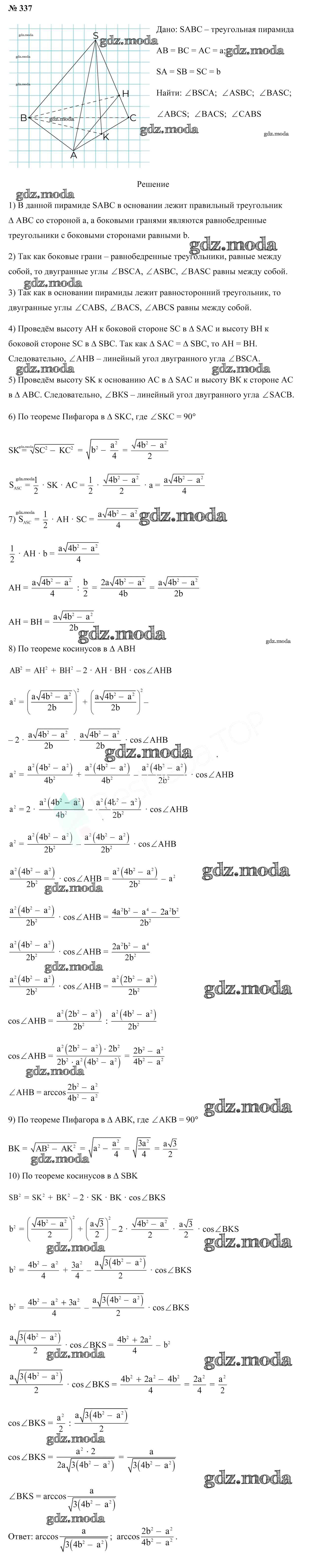 ОТВЕТ на задание № 337 Учебник по Геометрии 10 класс Латотин