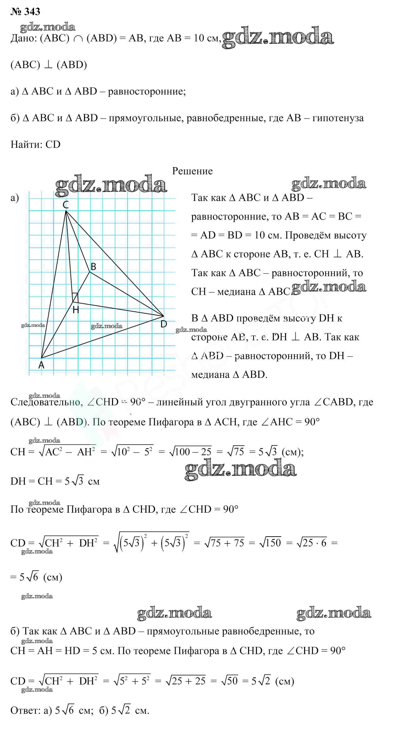 ОТВЕТ на задание № 343 Учебник по Геометрии 10 класс Латотин