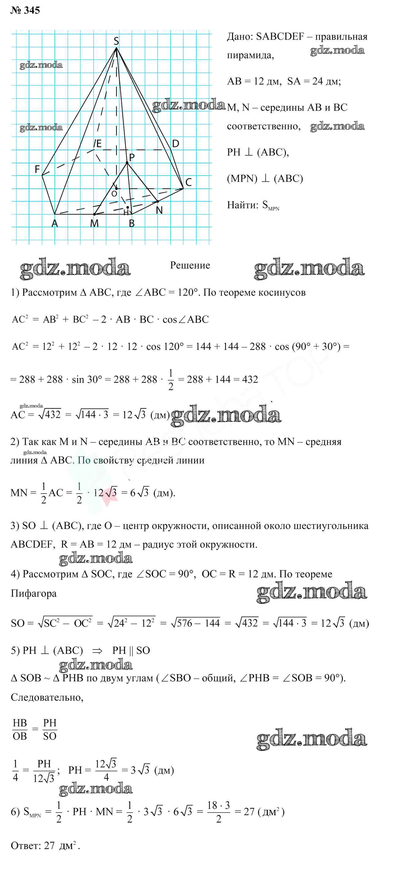 ОТВЕТ на задание № 345 Учебник по Геометрии 10 класс Латотин