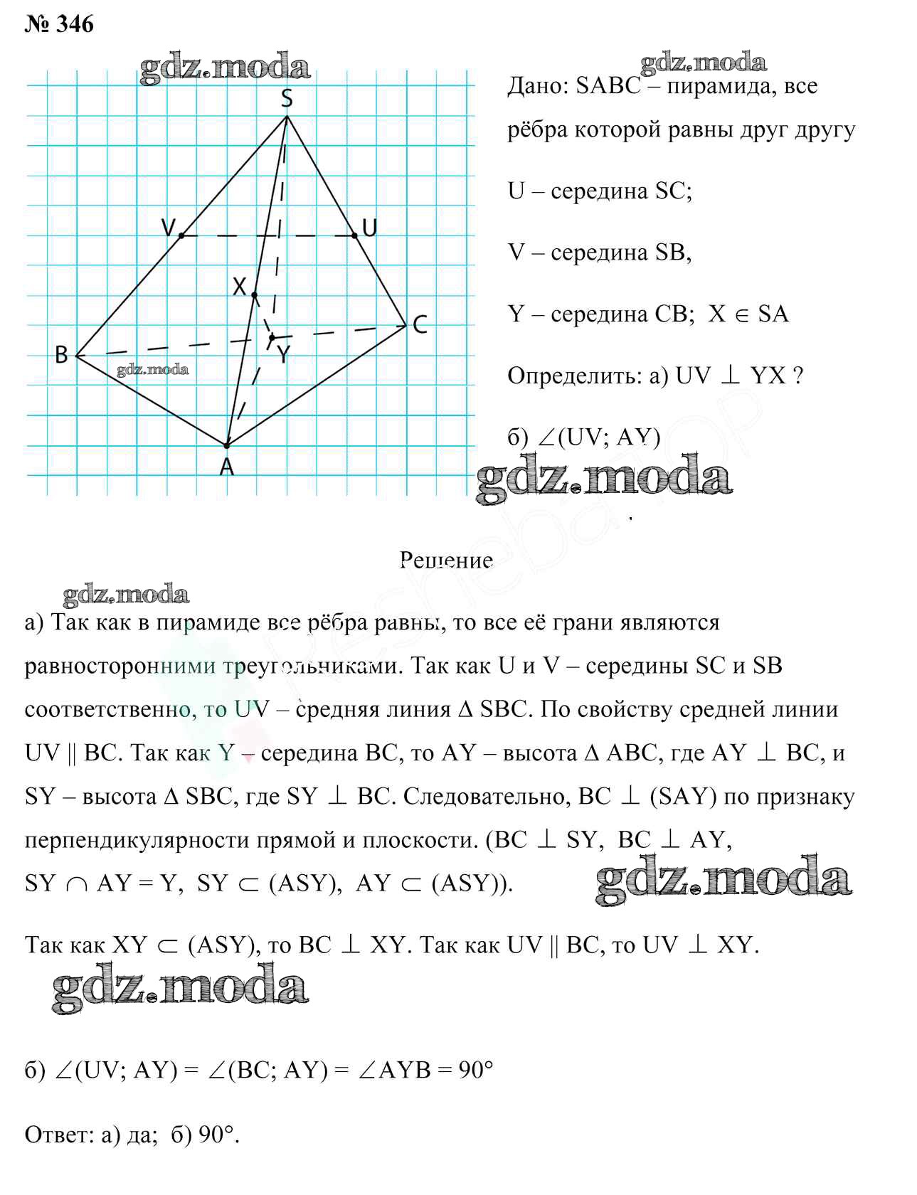 ОТВЕТ на задание № 346 Учебник по Геометрии 10 класс Латотин
