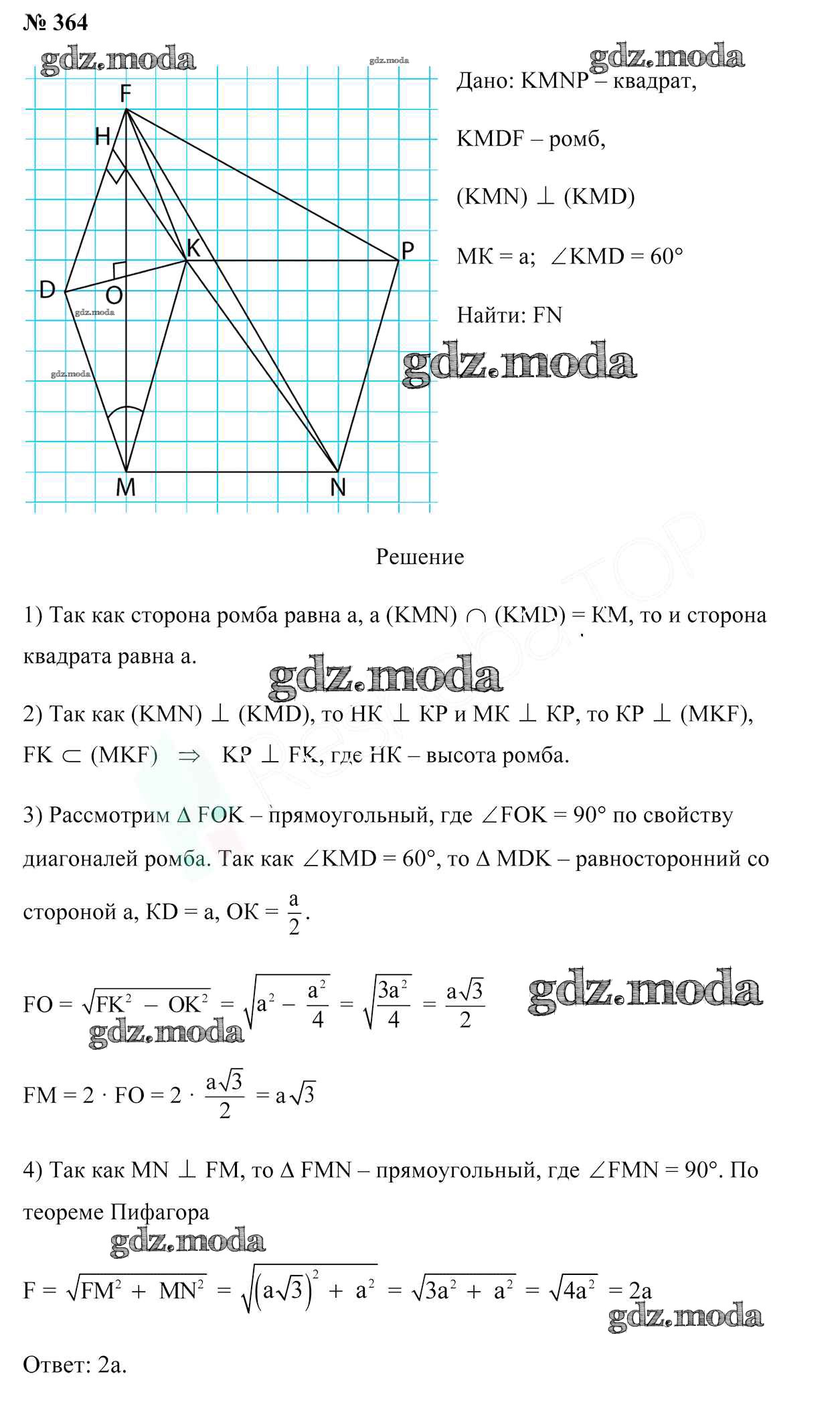 ОТВЕТ на задание № 364 Учебник по Геометрии 10 класс Латотин
