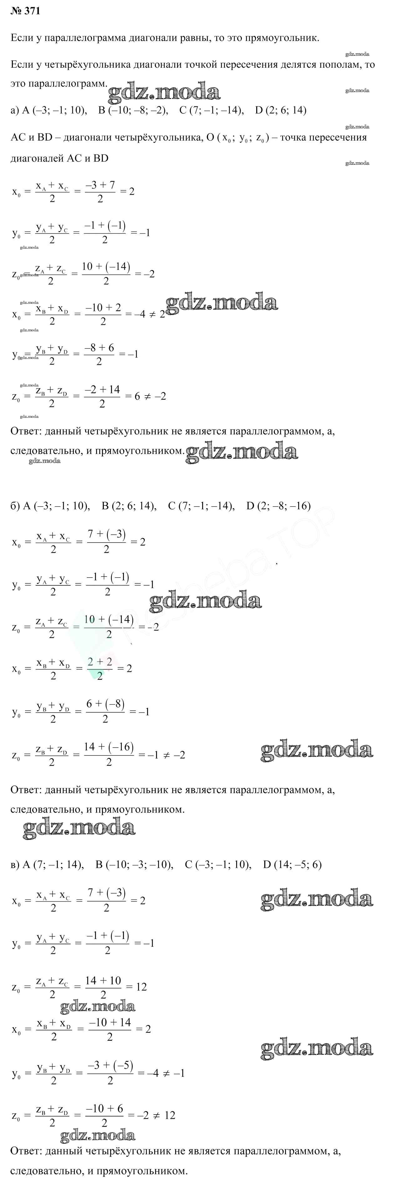 ОТВЕТ на задание № 371 Учебник по Геометрии 10 класс Латотин
