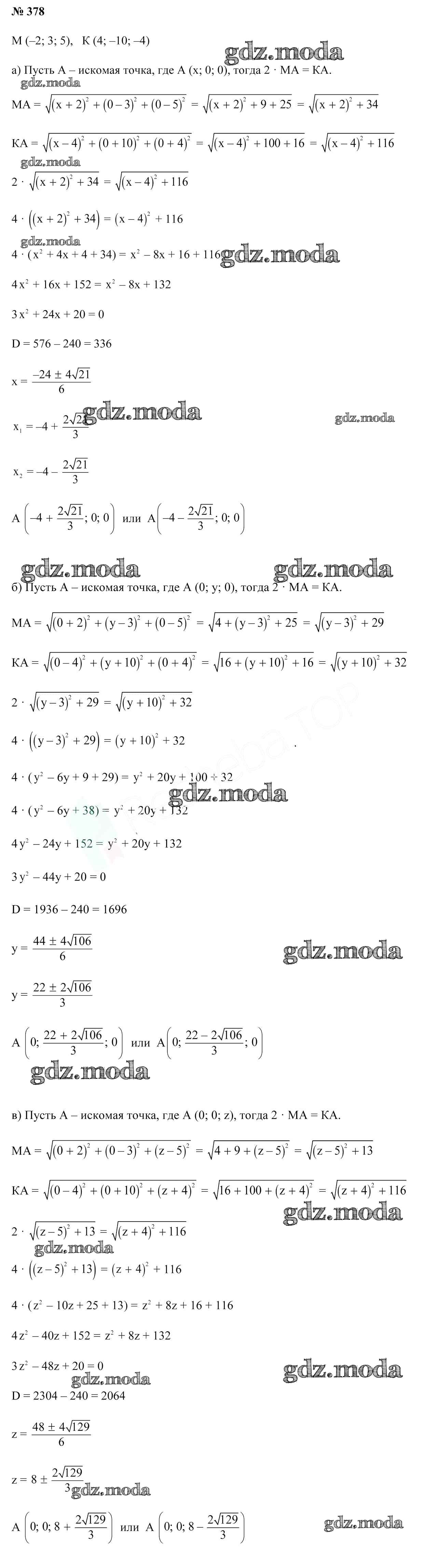 ОТВЕТ на задание № 378 Учебник по Геометрии 10 класс Латотин
