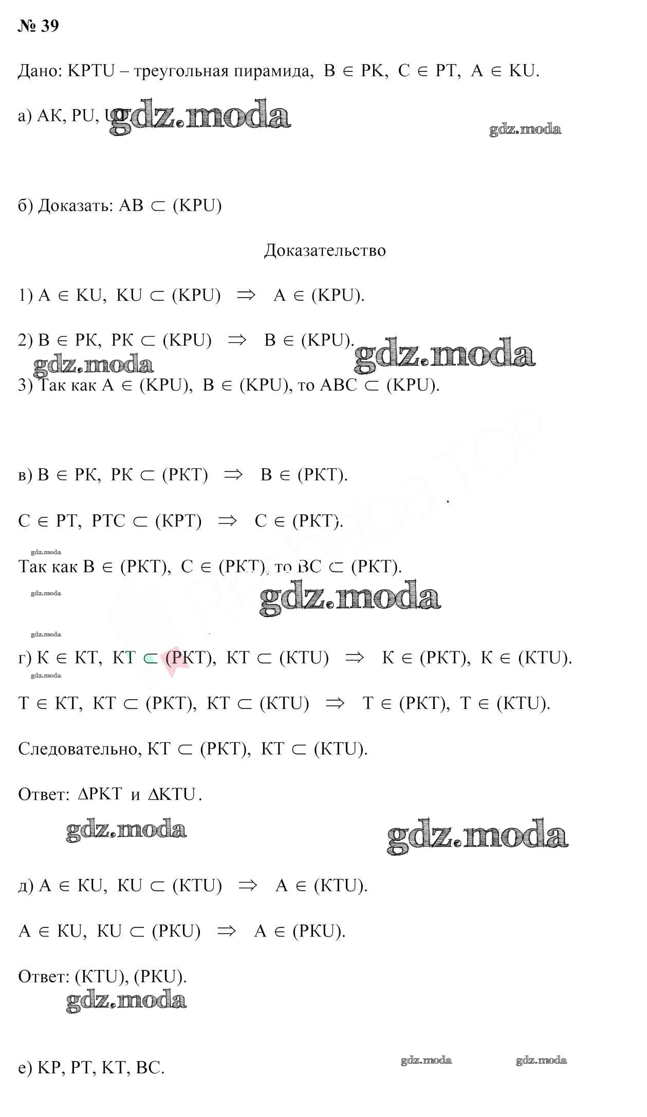 ОТВЕТ на задание № 39 Учебник по Геометрии 10 класс Латотин