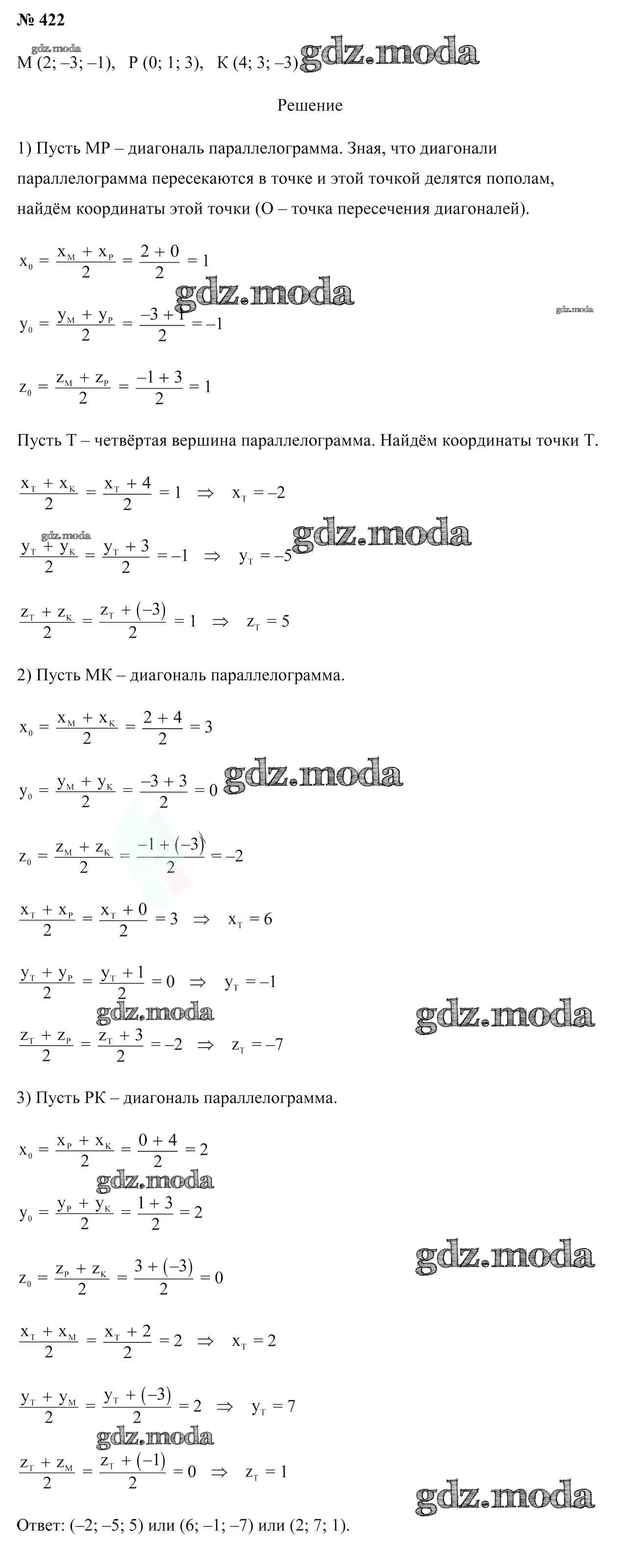 ОТВЕТ на задание № 422 Учебник по Геометрии 10 класс Латотин