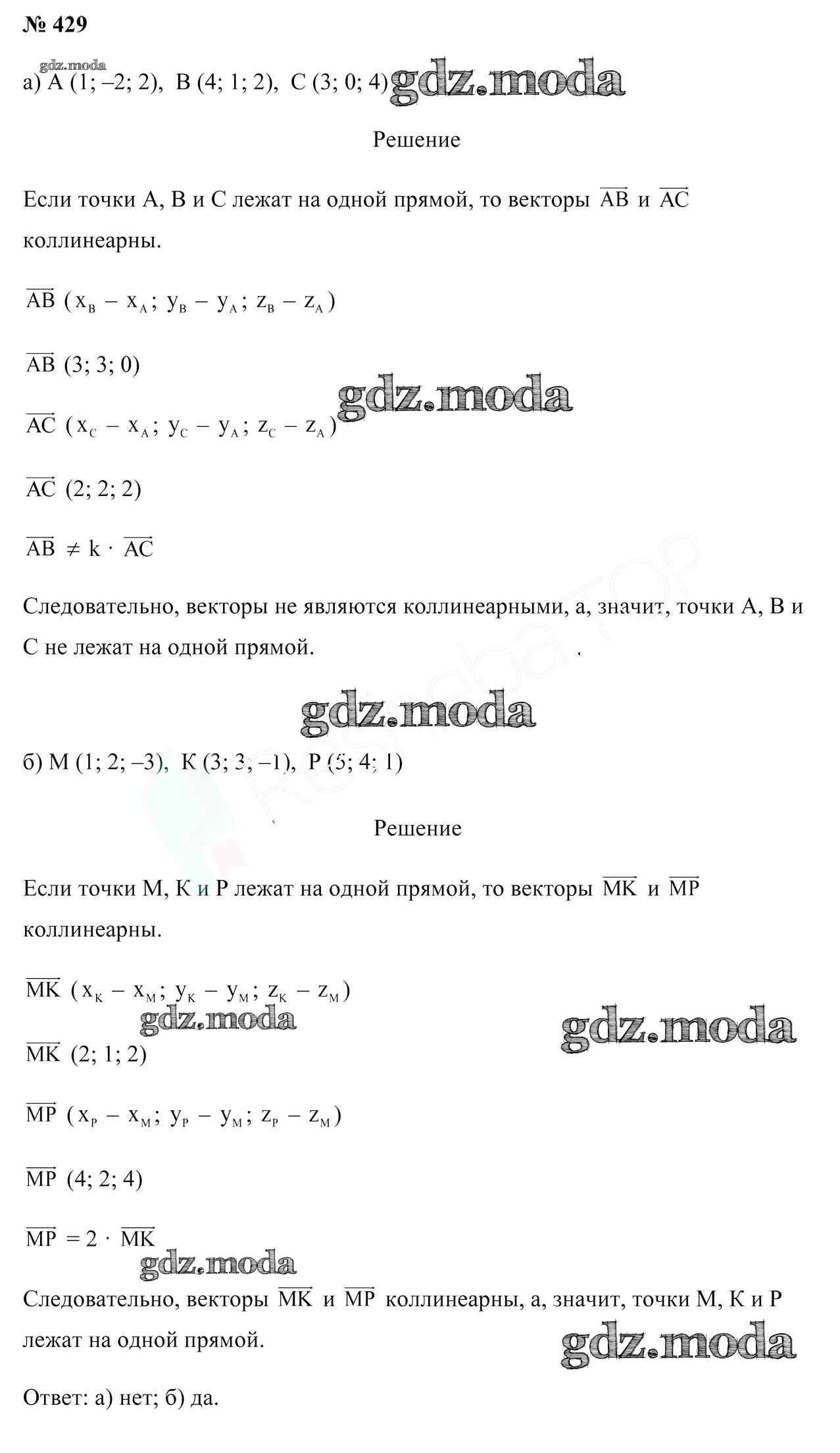 ОТВЕТ на задание № 429 Учебник по Геометрии 10 класс Латотин
