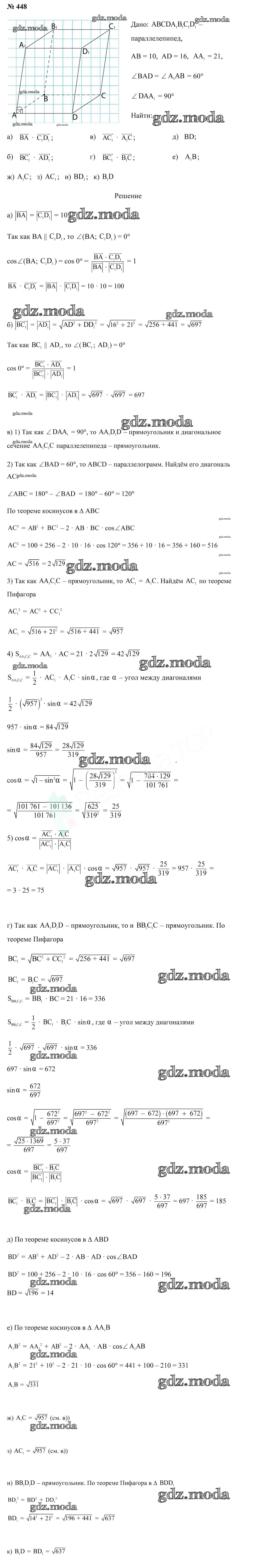 ОТВЕТ на задание № 448 Учебник по Геометрии 10 класс Латотин