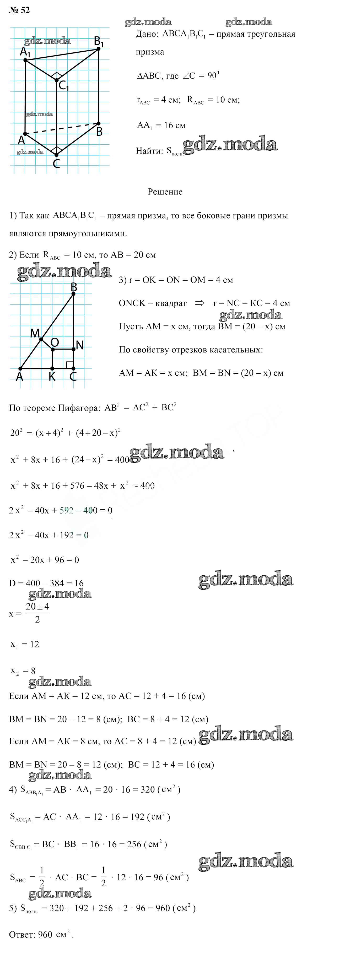 ОТВЕТ на задание № 52 Учебник по Геометрии 10 класс Латотин