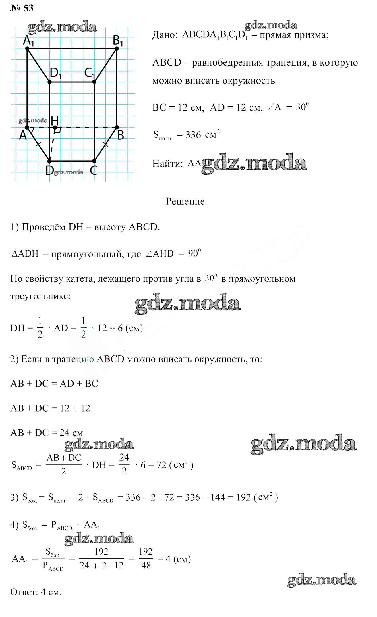 ОТВЕТ на задание № 53 Учебник по Геометрии 10 класс Латотин