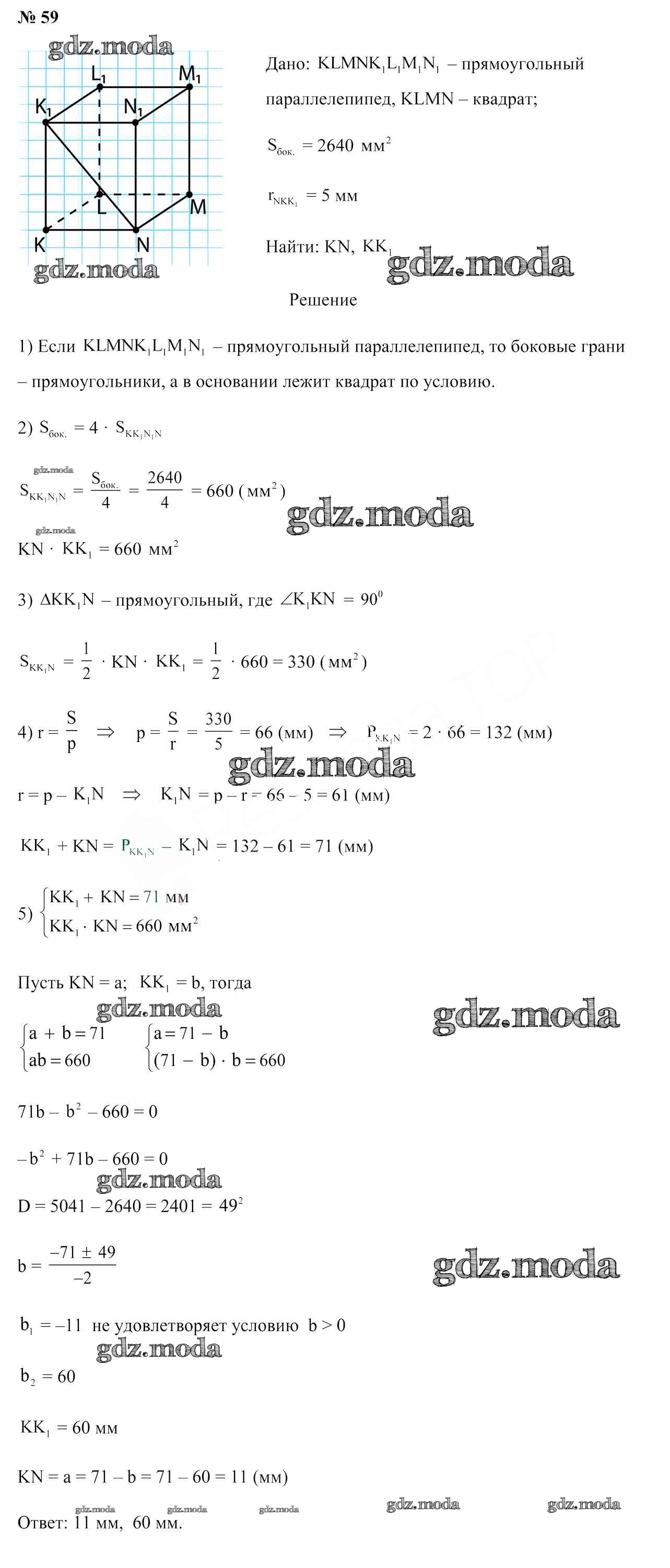 ОТВЕТ на задание № 59 Учебник по Геометрии 10 класс Латотин