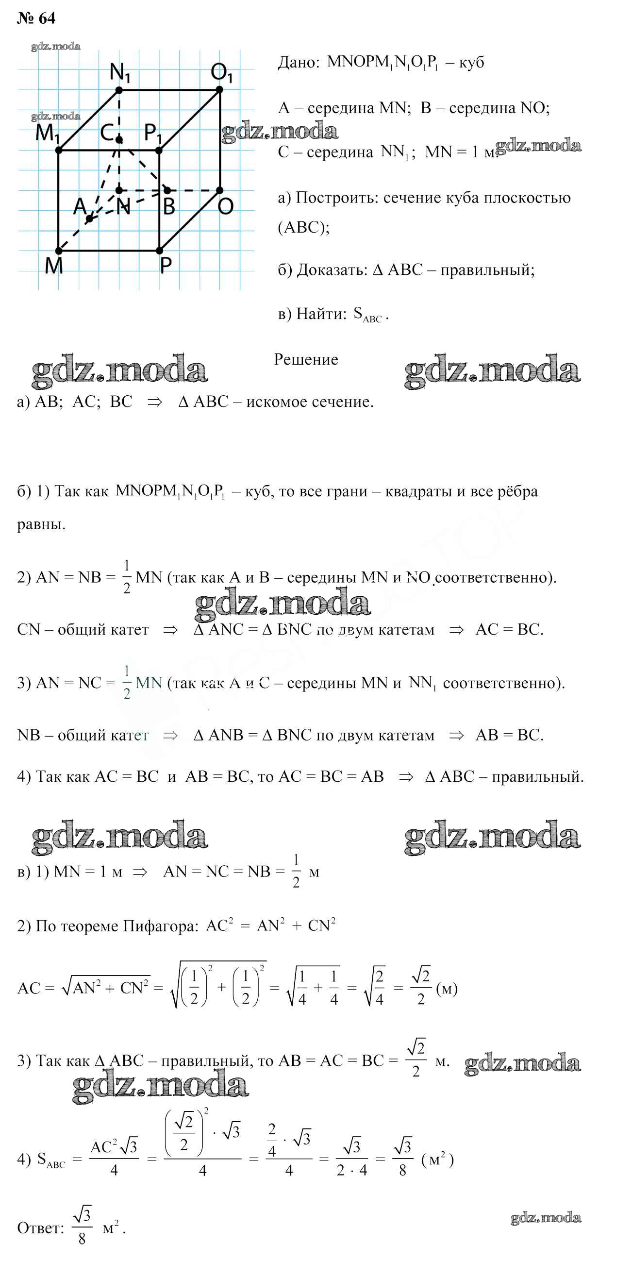 ОТВЕТ на задание № 64 Учебник по Геометрии 10 класс Латотин