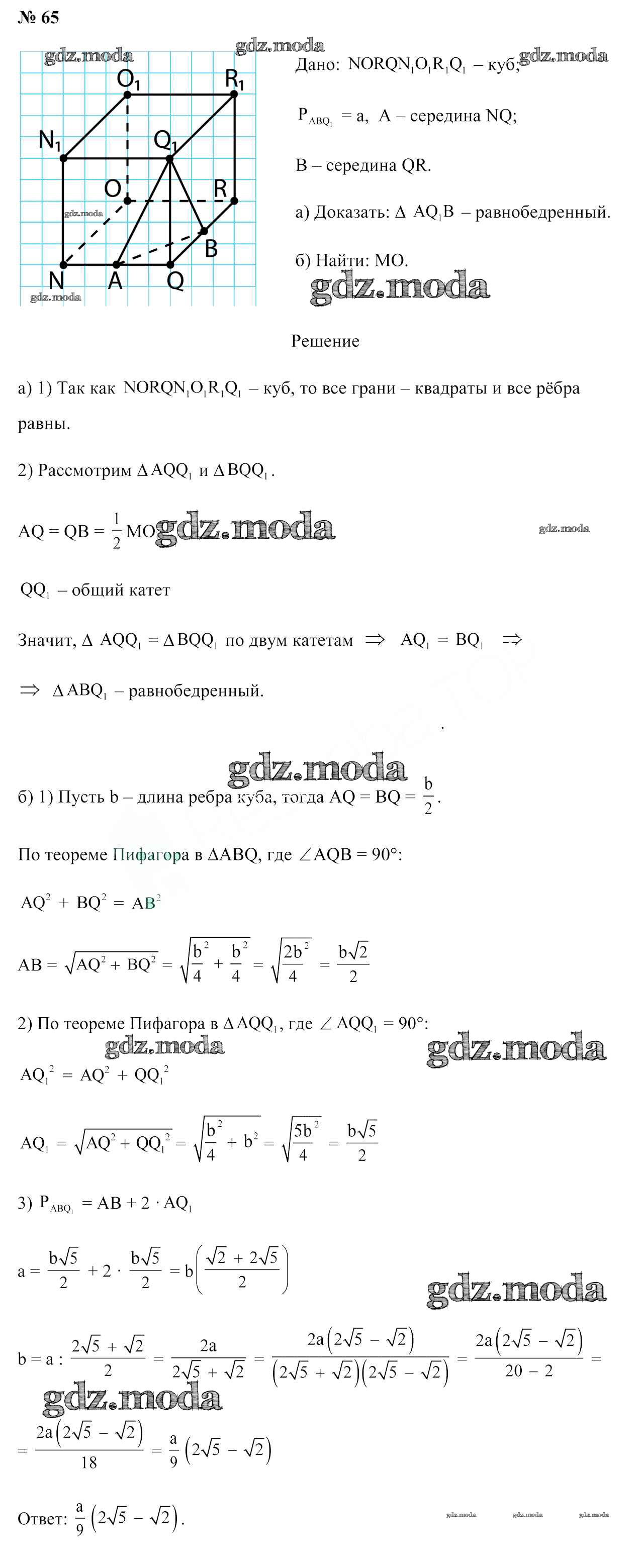 ОТВЕТ на задание № 65 Учебник по Геометрии 10 класс Латотин