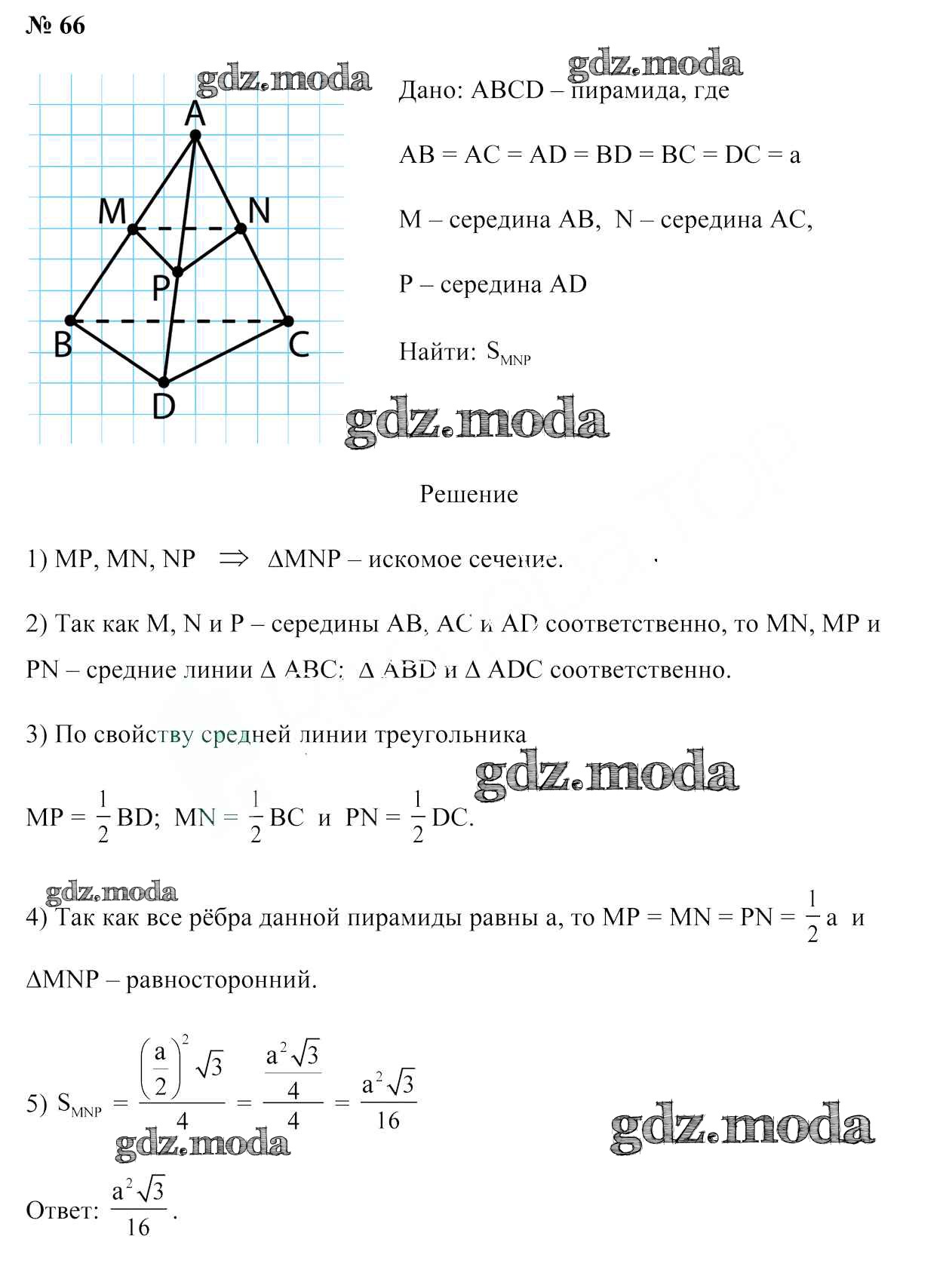 ОТВЕТ на задание № 66 Учебник по Геометрии 10 класс Латотин