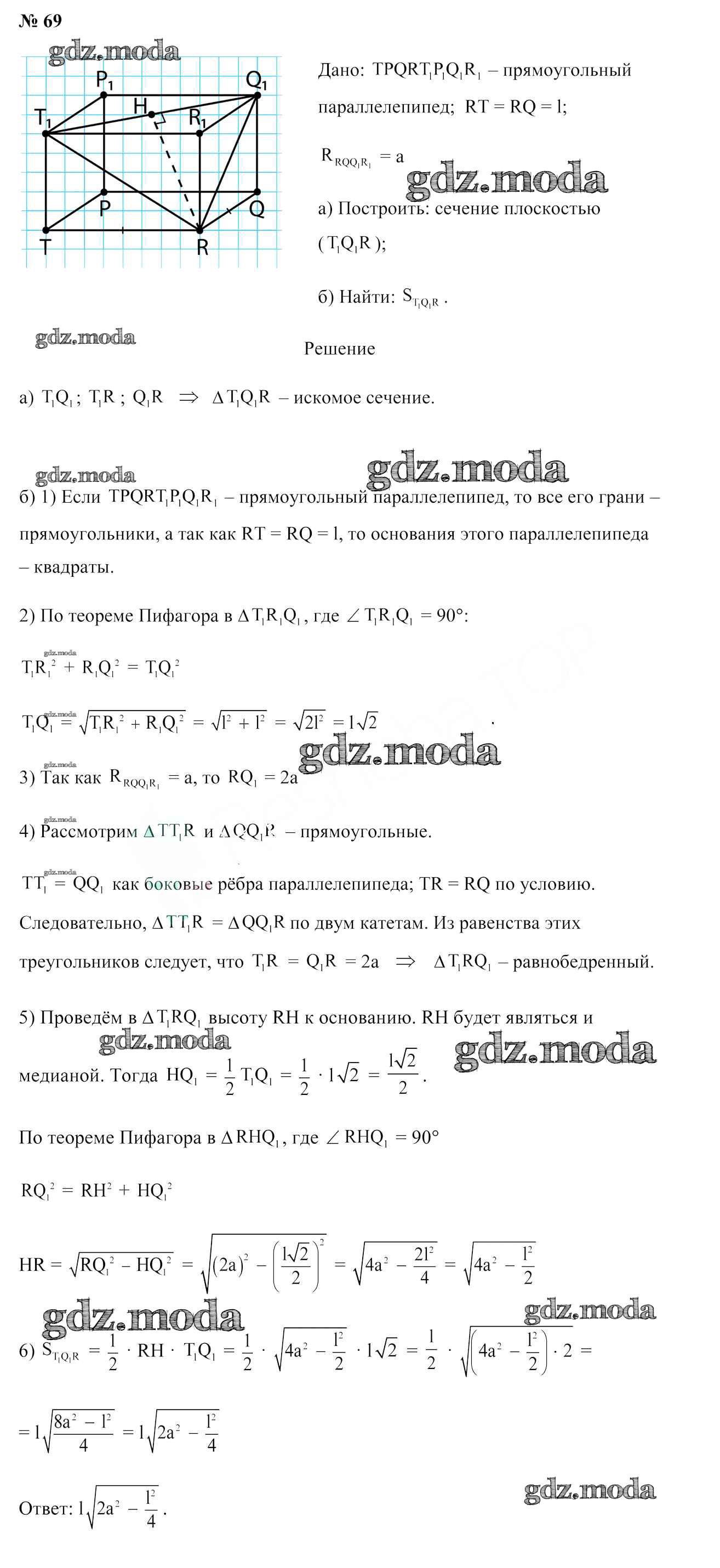 ОТВЕТ на задание № 69 Учебник по Геометрии 10 класс Латотин