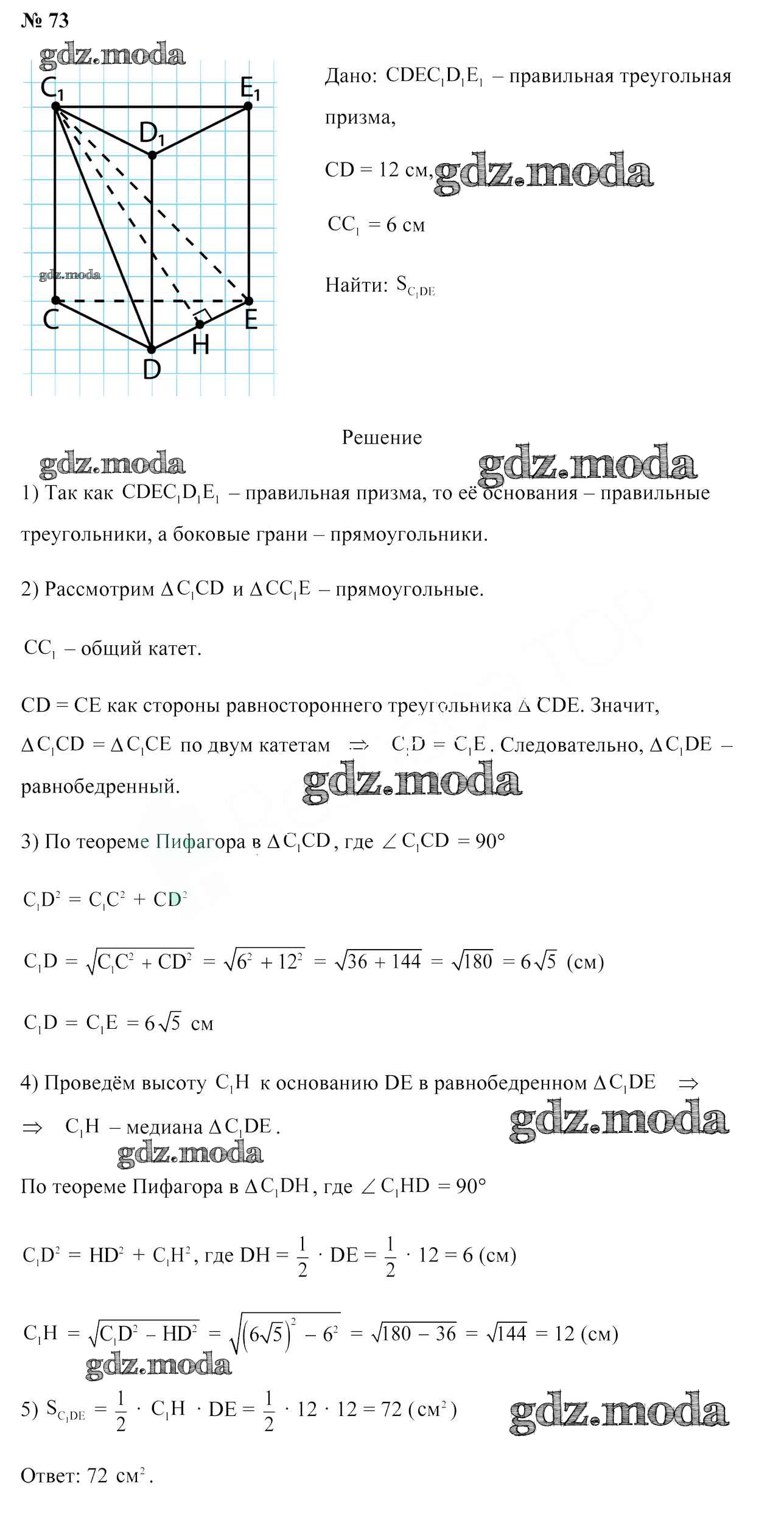 ОТВЕТ на задание № 73 Учебник по Геометрии 10 класс Латотин