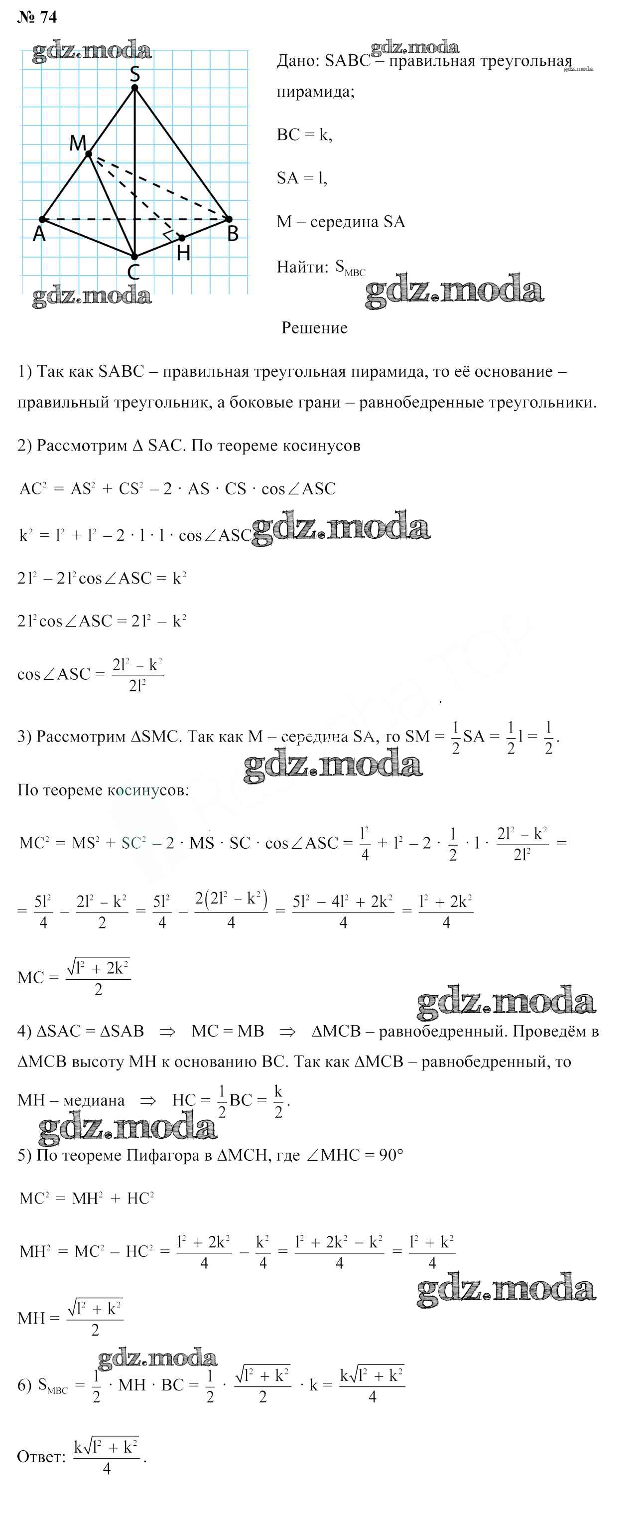 ОТВЕТ на задание № 74 Учебник по Геометрии 10 класс Латотин