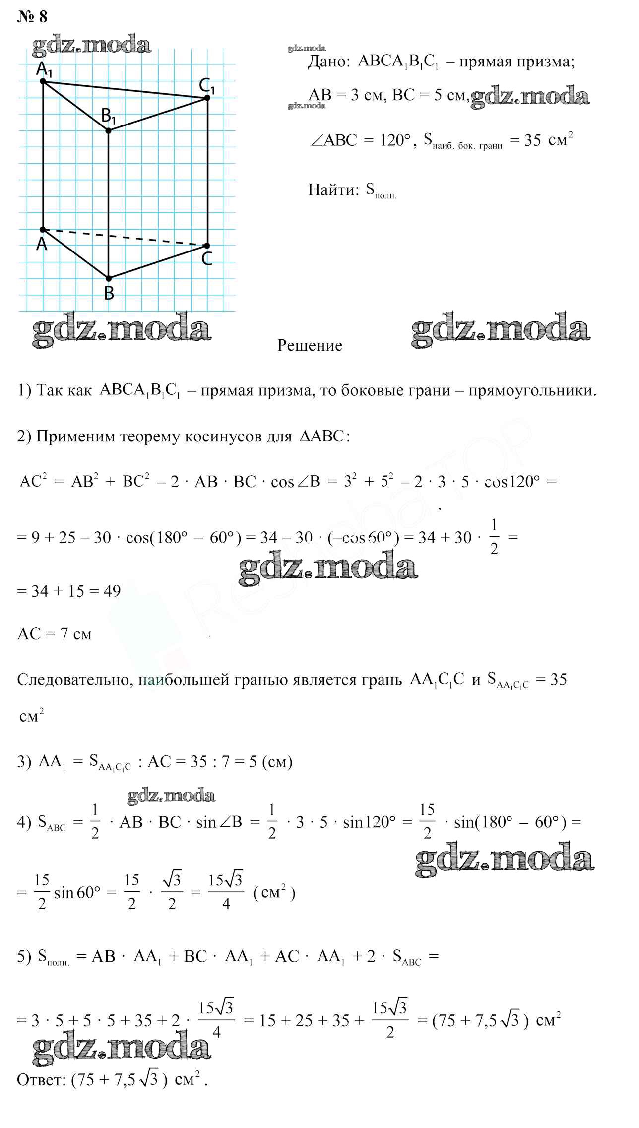 ОТВЕТ на задание № 8 Учебник по Геометрии 10 класс Латотин