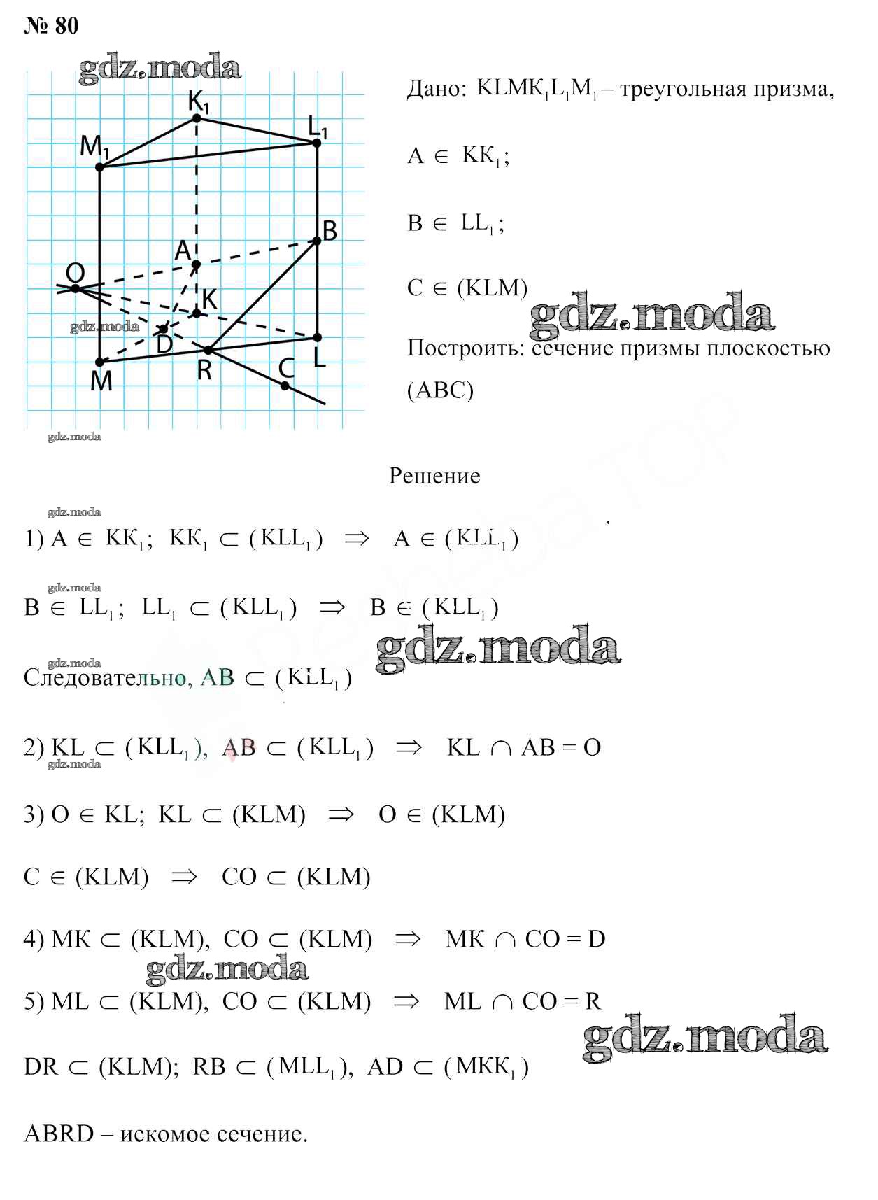 ОТВЕТ на задание № 80 Учебник по Геометрии 10 класс Латотин