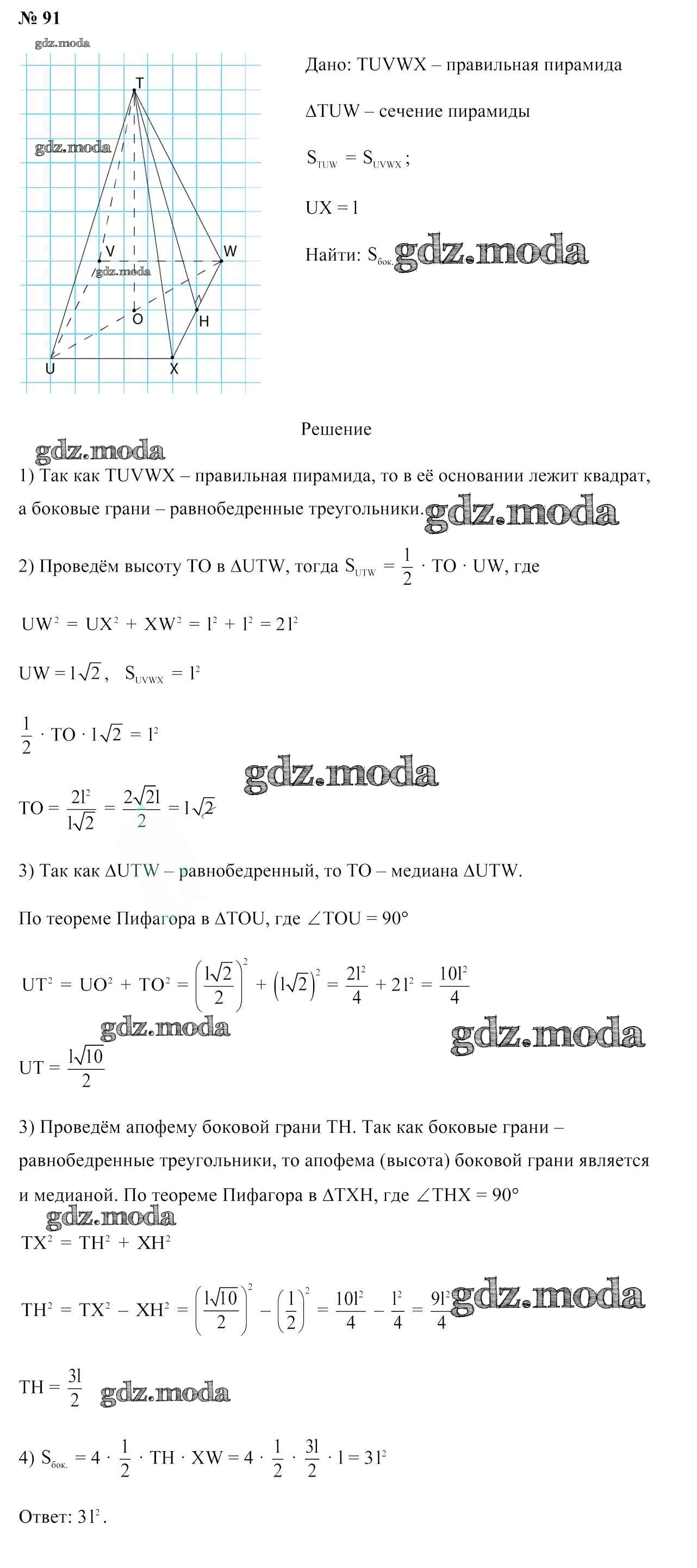 ОТВЕТ на задание № 91 Учебник по Геометрии 10 класс Латотин