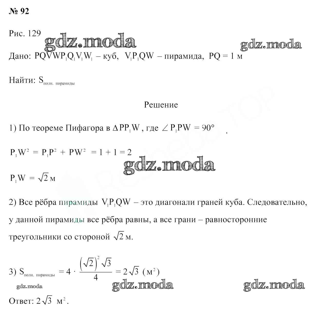 ОТВЕТ на задание № 92 Учебник по Геометрии 10 класс Латотин