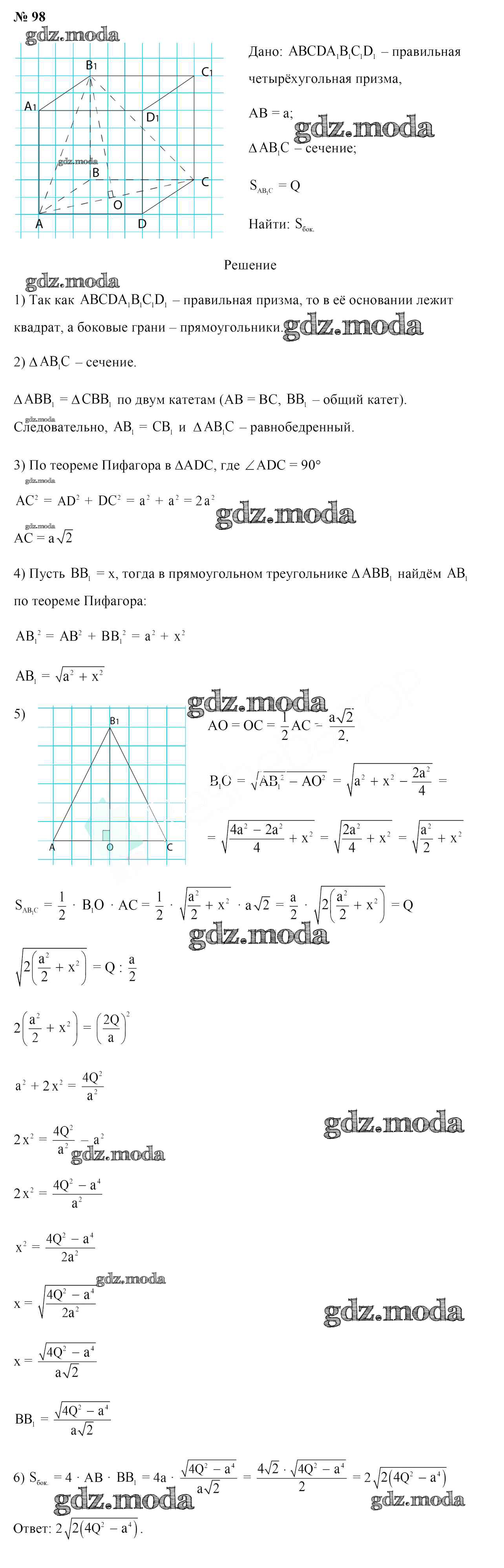 ОТВЕТ на задание № 98 Учебник по Геометрии 10 класс Латотин
